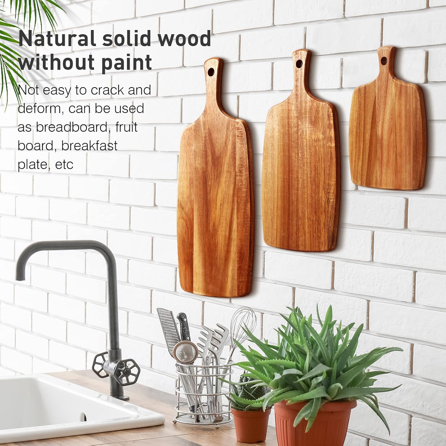 Kathfly 3 Pcs Acacia Wood Cutting Board with Handle Wooden Laser Kitchen Serving Charcuterie Board for Vegetables Meat Pizza Cheese Fruit Bread(17x7, 14x7, 10x7 Inch)
