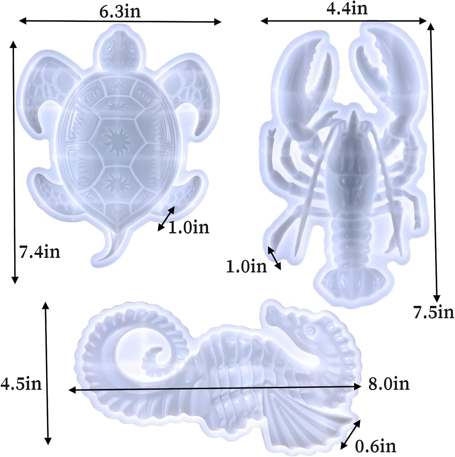 - 【SEA RESIN MOLD】The package includes 3x sea animal resin molds(sea turtle,seahorse, lobster). Bring more creativity and vitality to your work. Very suitable for resin ocean painting art, or you could add glitter powder, mica powder, liquid resin dye, dried flowers, pattern, name, word etc. in the resin, to get your own beautiful finished craft
