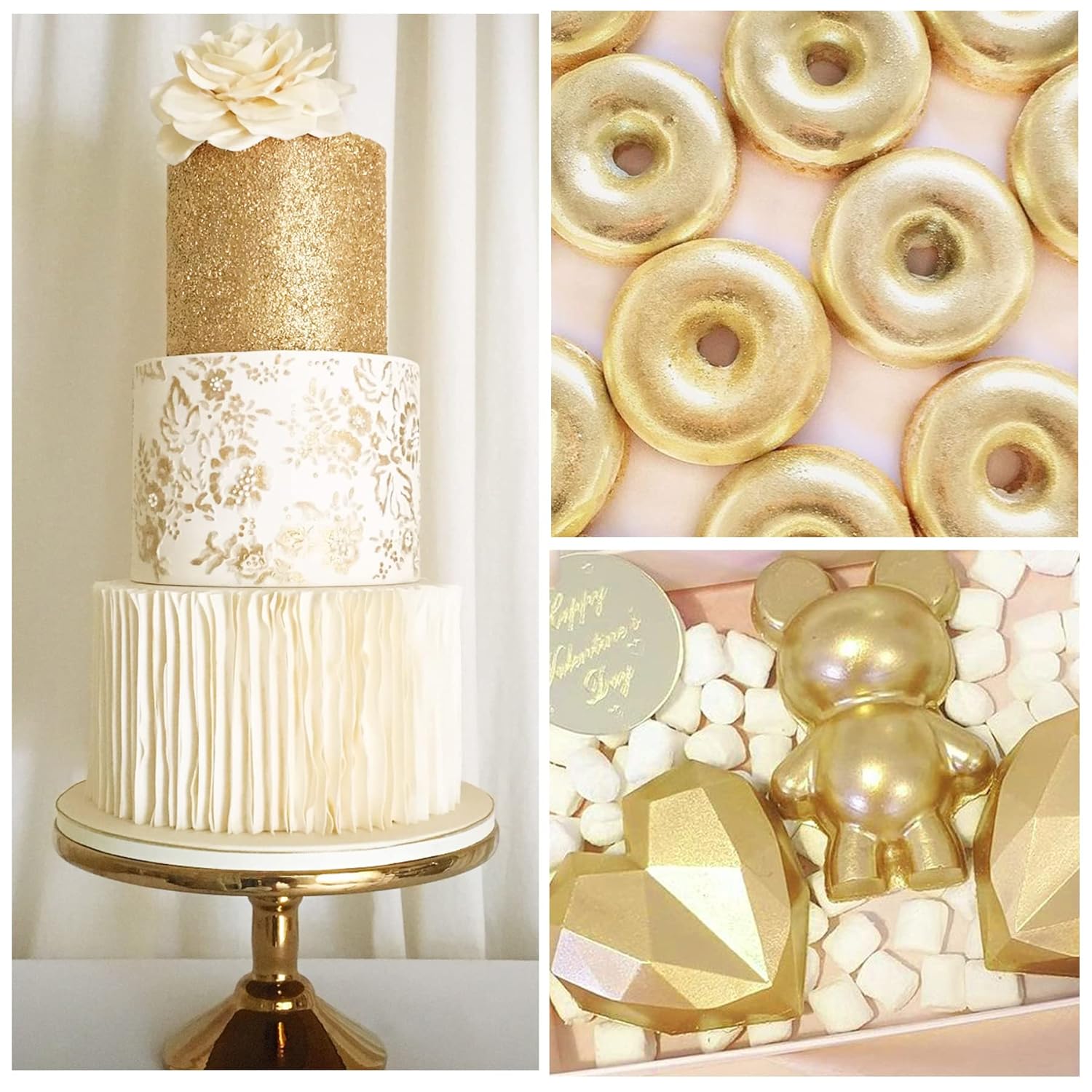 - SAFE FOOD GRADE INGREDIENTS - Our icing decorating dusting powder adopt food grade ingredients, no sugar or spices. Gluten free, dairy free, vegan, allergen-free. It provides vibrant metallic effects for all types of applications without changing the taste or texture.