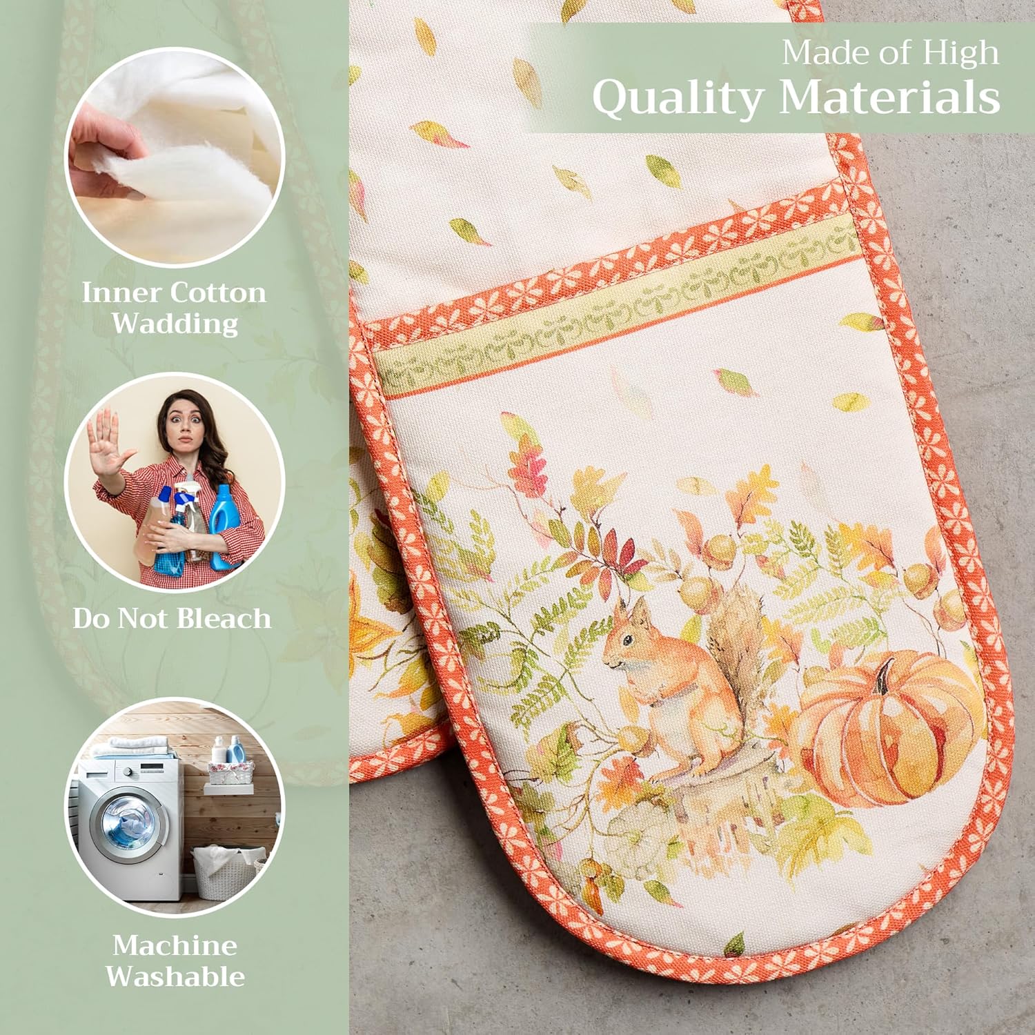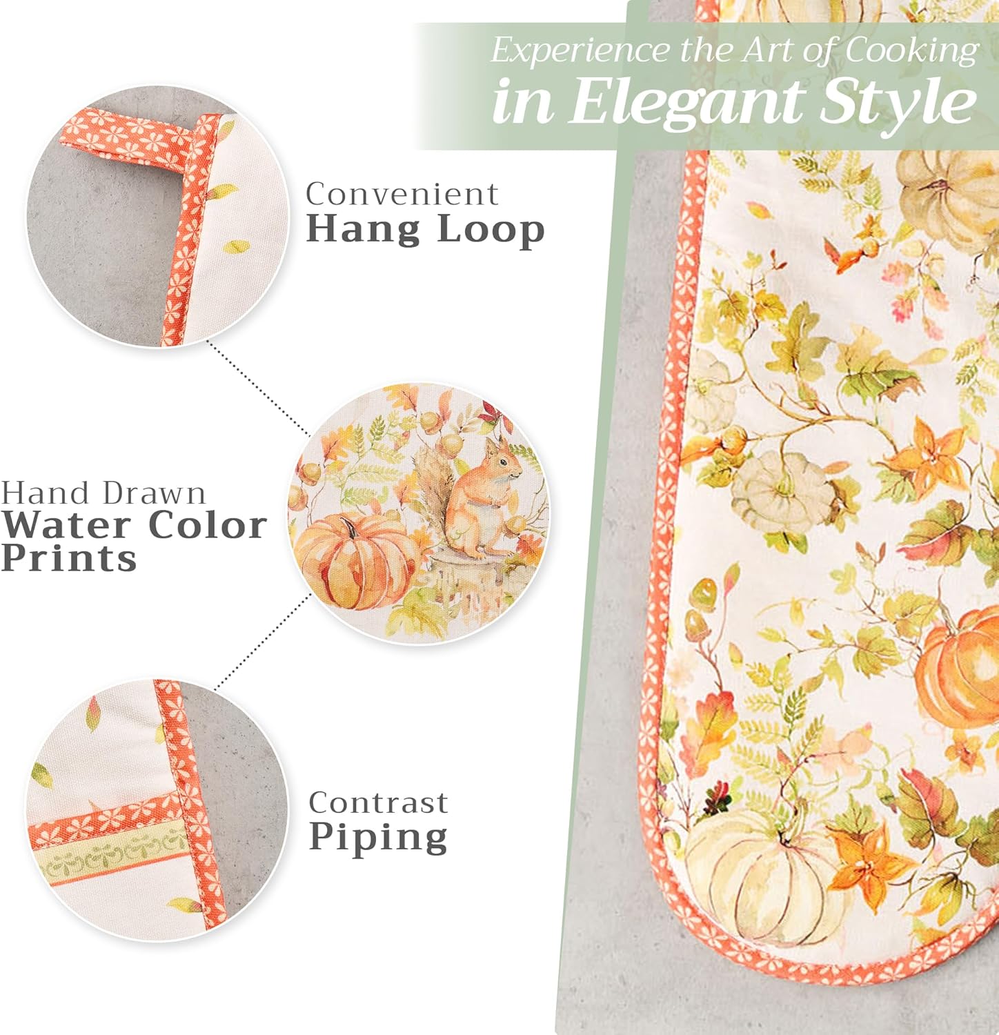 Maison d' Hermine Double Oven Mitts 100% Cotton 7"x35" Double Oven Mitt Heat Resistant BBQ Cooking Gloves with Loop, Baking, Grilling, Home, Kitchen, Handling Hot Pans (Pumpkin Passion)