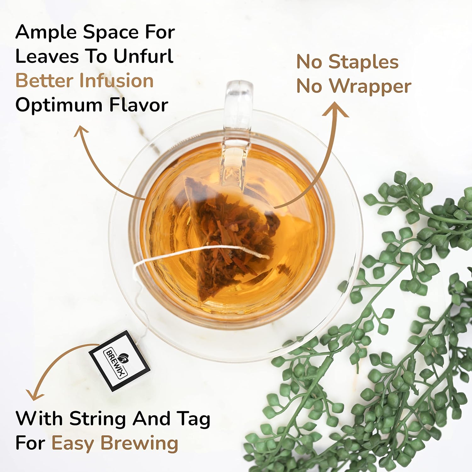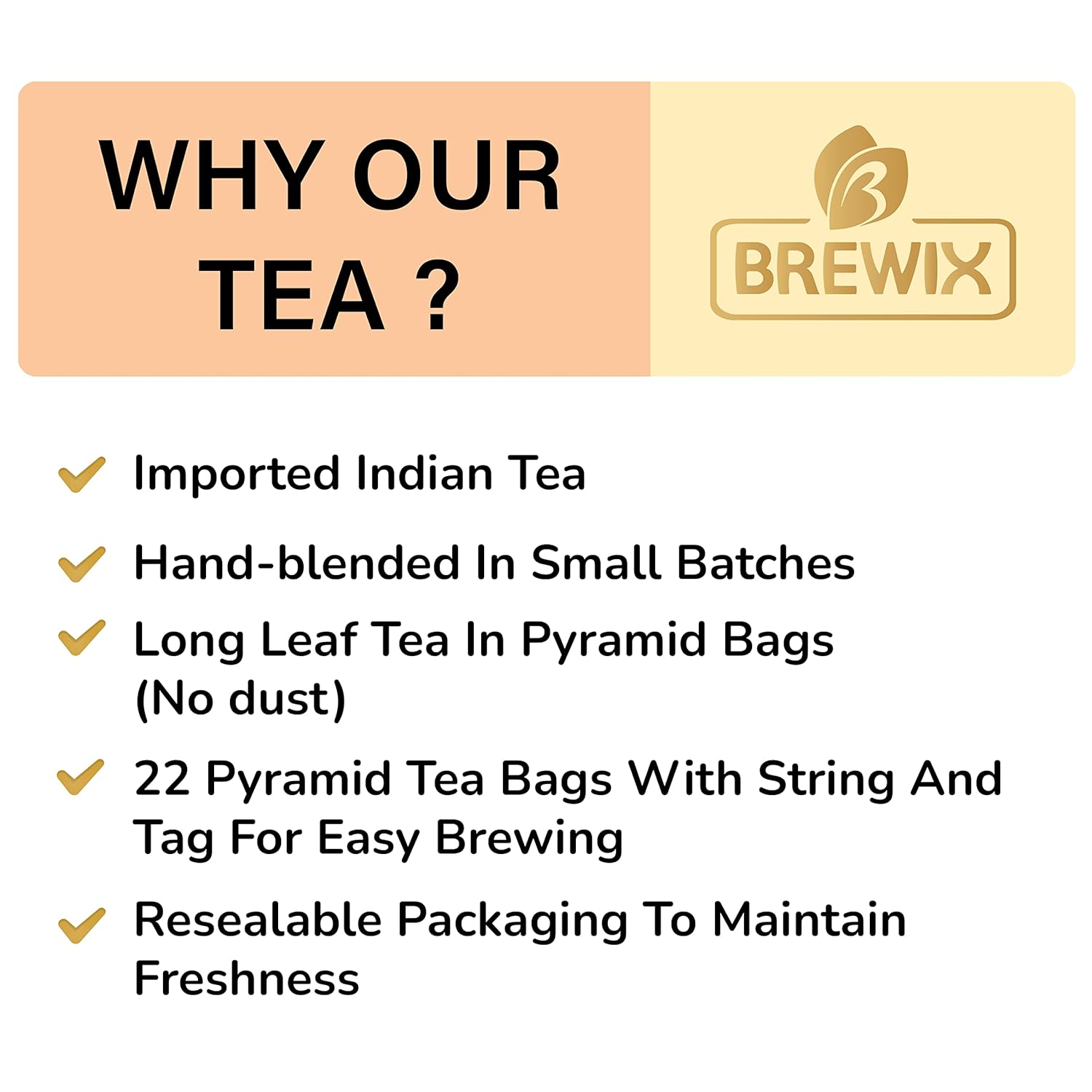 - CONVENIENTLY PACKED - The tea comes packed in pyramid bags that allow for a more fuller and intense brew as it provides ample space for the tea leaves to unfurl and infuse. We have removed individual sachets from our packaging to reduce wastage, instead the pyramid bags are packed inside a resealable pouch that can be conveniently stored or carried as a travel tea.Each black tea bag contains 2gms of tea.