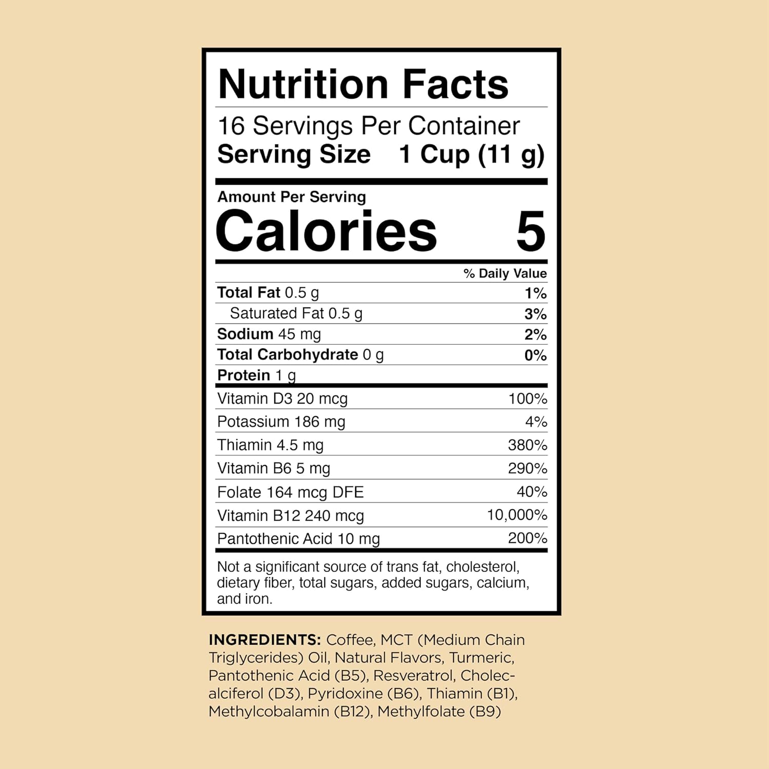 - DAILY VITAMINS : Get your daily vitamins from one cup of coffee. A powerhouse blended vitamin infusion of B1, B5, B6, B9, B12 and D3 to make it easy getting nutrients to power your body.
