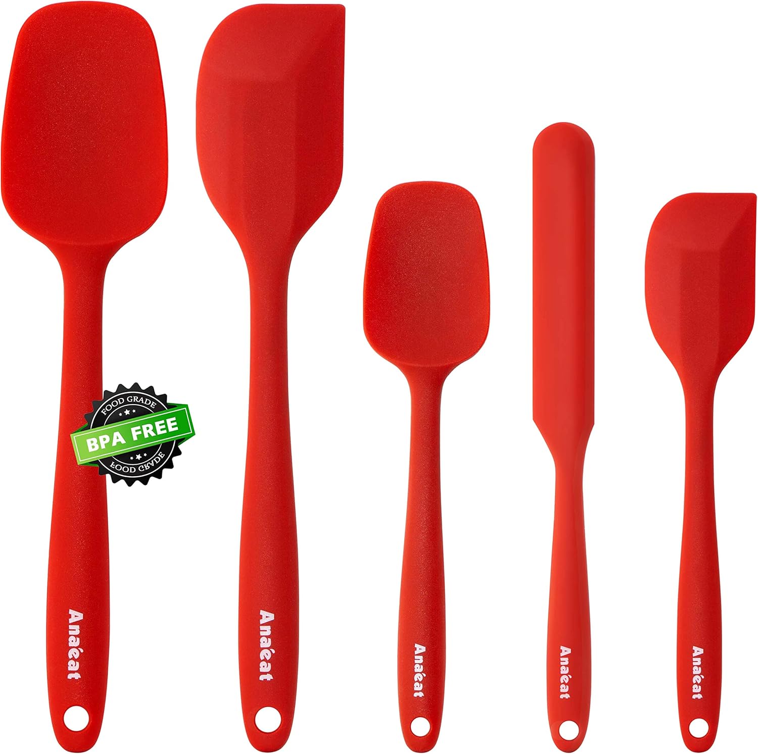Anaeat Silicone Spatula Set of 5 - Seamless One-Pieces Design, Non-Stick Rubber Spatulas BPA Free Kitchen Scraper Flexible for Easy Baking, Cooking, Scraping & Mixing, Heat Resistant & Dishwasher Safe