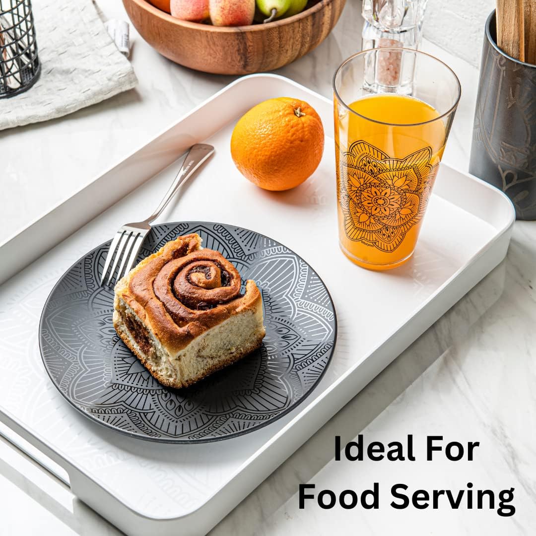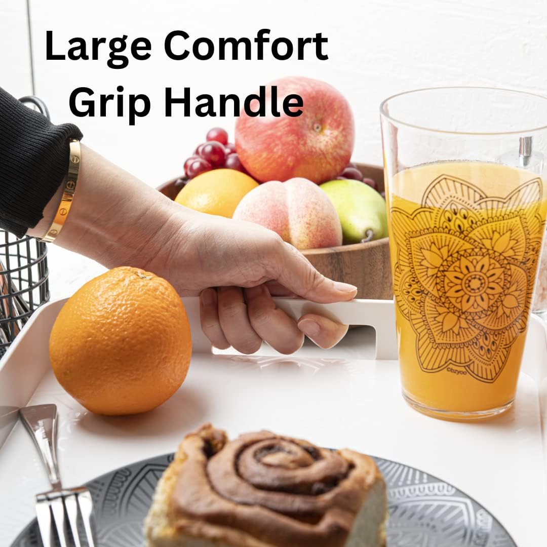 - HANDLES DESIGN - The rounded handle allows you to push or pull the tray easily, so the tray can be handled steadily from one place to another. The large cut-out handles design allows you to grip the tray stably and not slip off. A modern and simple appearance with a smooth edge design is the necessary choice for your home.