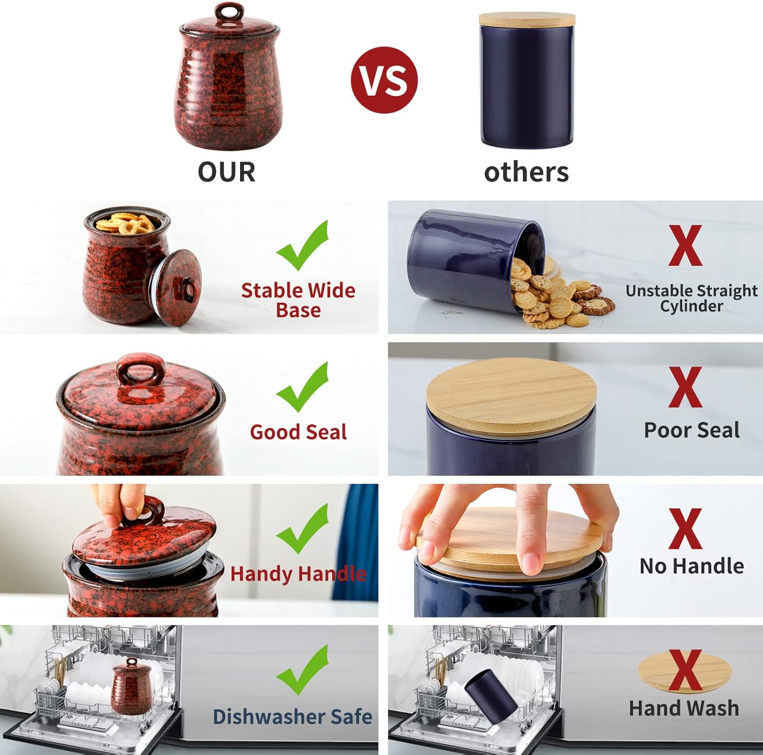 - Keep Your Food Fresh: Upgraded ceramic lid with an airtight seal ring and easy-grip handle ensures a secure fit, keeping air and moisture out. This airtight jar creates an enclosed environment, helping preserve the freshness of your food for longer periods