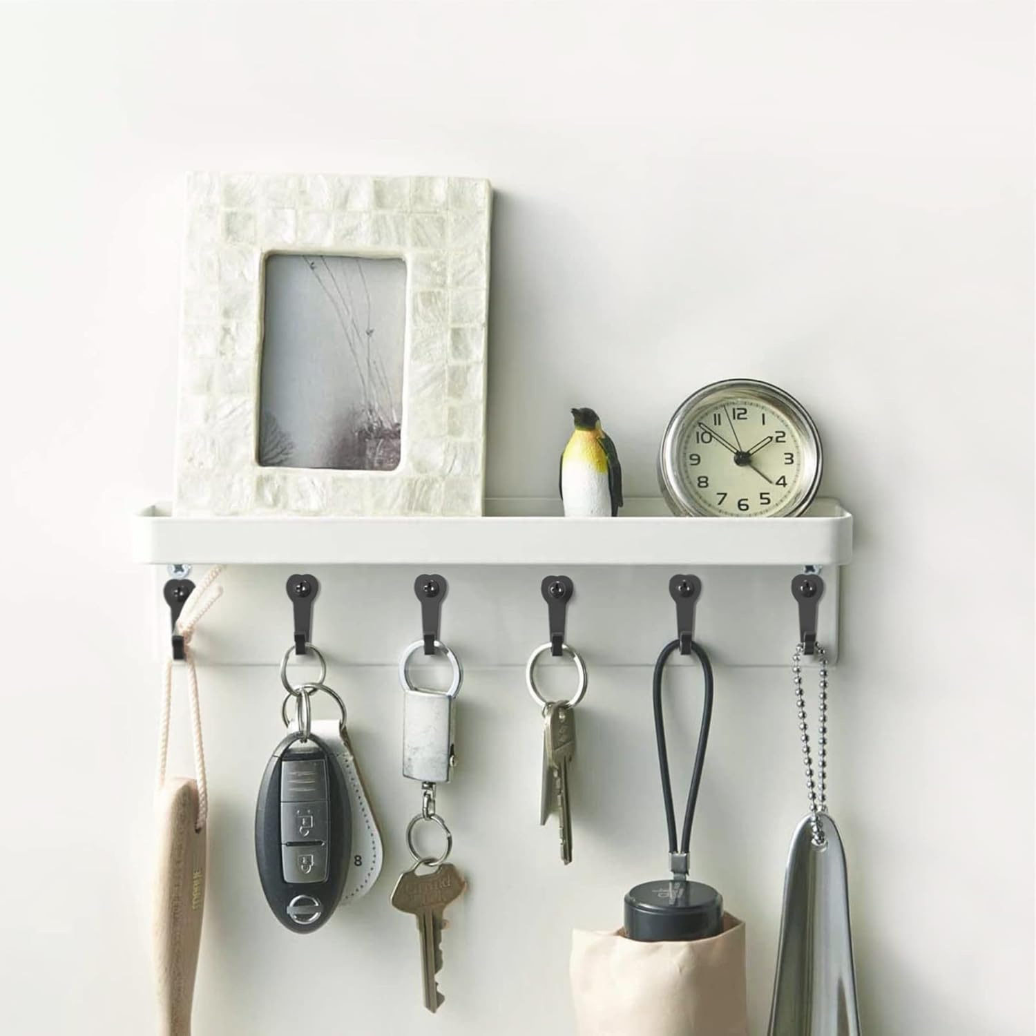 - Wide Application:You can use these hooks in bathrooms, closets, kitchen and garage, to hang various items, such as necklaces, coffee cup, cup, coats, belts, handbags, jewelry pieces, baskets, cooking ware, keys and so on