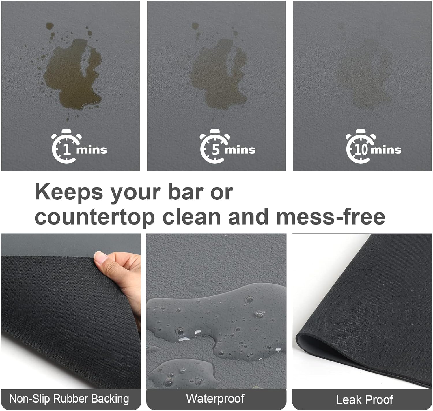 - Super Absorbent & Quick Drying: Made with high-absorbent materials and a diatomite layer, this coffee mat quickly absorbs spills and drips. Its breathable design promotes fast drying, keeping your coffee bar clean, dry, and mess-free.