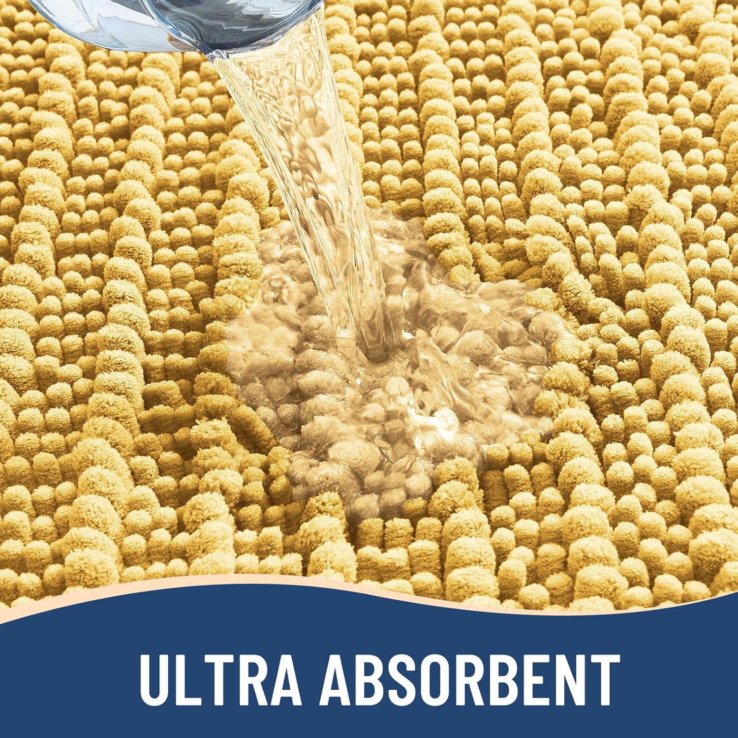 Arotive Luxury Chenille Bathroom Rug Mat, Extra Soft Thick Absorbent Shaggy Bath Rugs, Non-Slip Machine Wash Dry, Plush Bath Mats for Bathroom, Shower and Tub, 60x24, Yellow