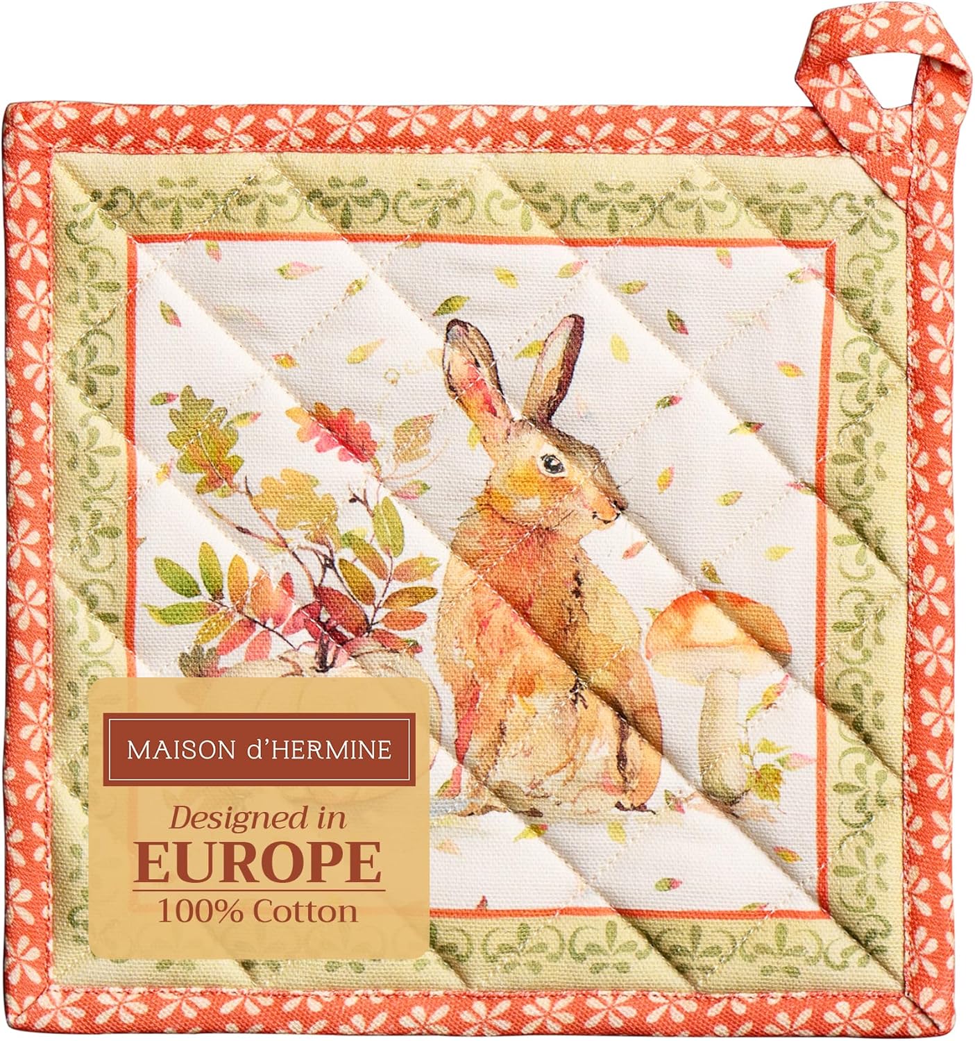 Maison d' Hermine Pot Holders 100% Cotton Heat Resistant Potholders 8" x 8" Hot Pads with Loop BBQ, Cooking, Baking, Grilling, Kitchen, Handling Hot Pans (Pack of 1, Pumpkin Passion)