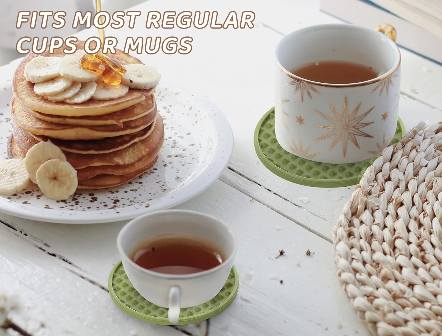 Coasters for Drinks 6 Pcs Plastic Coaster with Holder,Heat Resistant Silicone Cup Mat Tabletop Protection,Non-Slip Rubber Coasters for Kinds of Cups (Green)