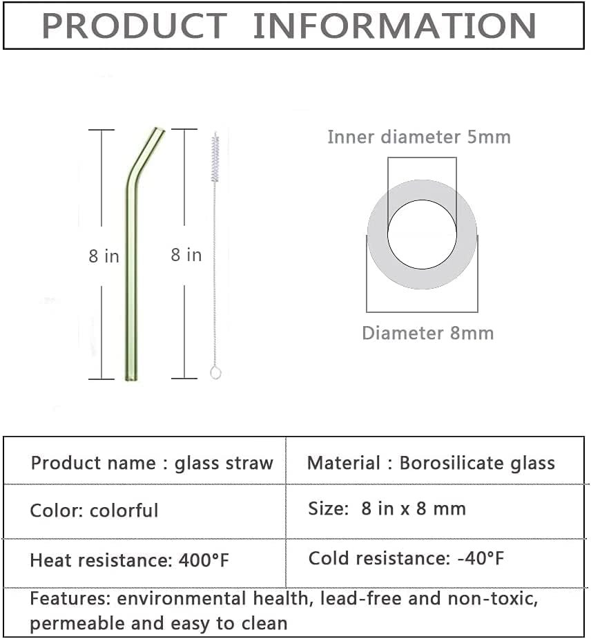 - Safe and durable, the glass straw is strong and durable, not easy to break, safe to use and easy to clean. Dishwasher safe, can be cleaned manually with a cleaning brush, we also come with 2 cleaning brushes. Let you don't worry about cleaning.