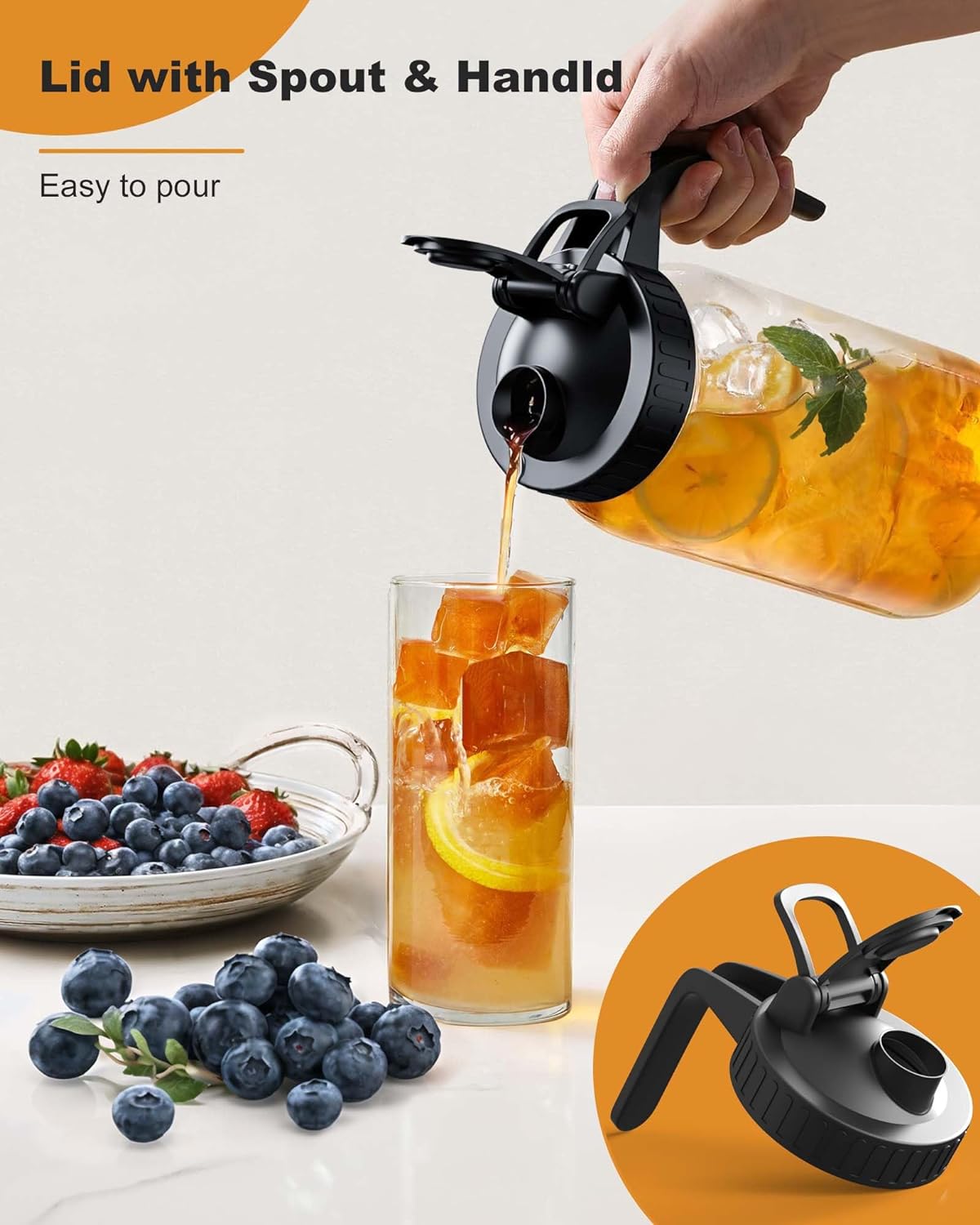 - Keep Your Drinks Fresh and Flavorful -64oz glass pitcher comes with an airtight flip with silicone seal that seals in the flavor and freshness of your favorite beverages while also being leak-proof. It's easy and convenient to open, pour and close, making it perfect for store your drinking