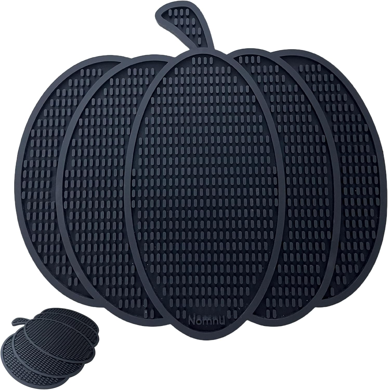 Nomnu Pumpkin Coffee Mat for Countertop - Goth Kitchen Decor - Gothic Coffee Bar Accessories 14.8x13.5 Inch Bar Mat - Spooky Halloween Gifts Non Slip Spill Mat, Black (PCBMB)