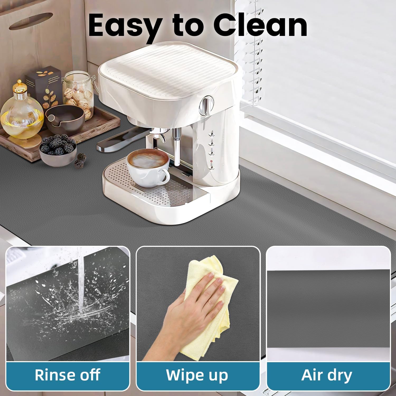 PoYang 31"x17" Coffee Mat X-Large, Coffee Bar Accessories for Countertop, Absorbent Dish Drying Mat, Anti-Slip and Hide Stain Pad for Espresso Machine, Espresso Maker and Kitchen Counter, Gray