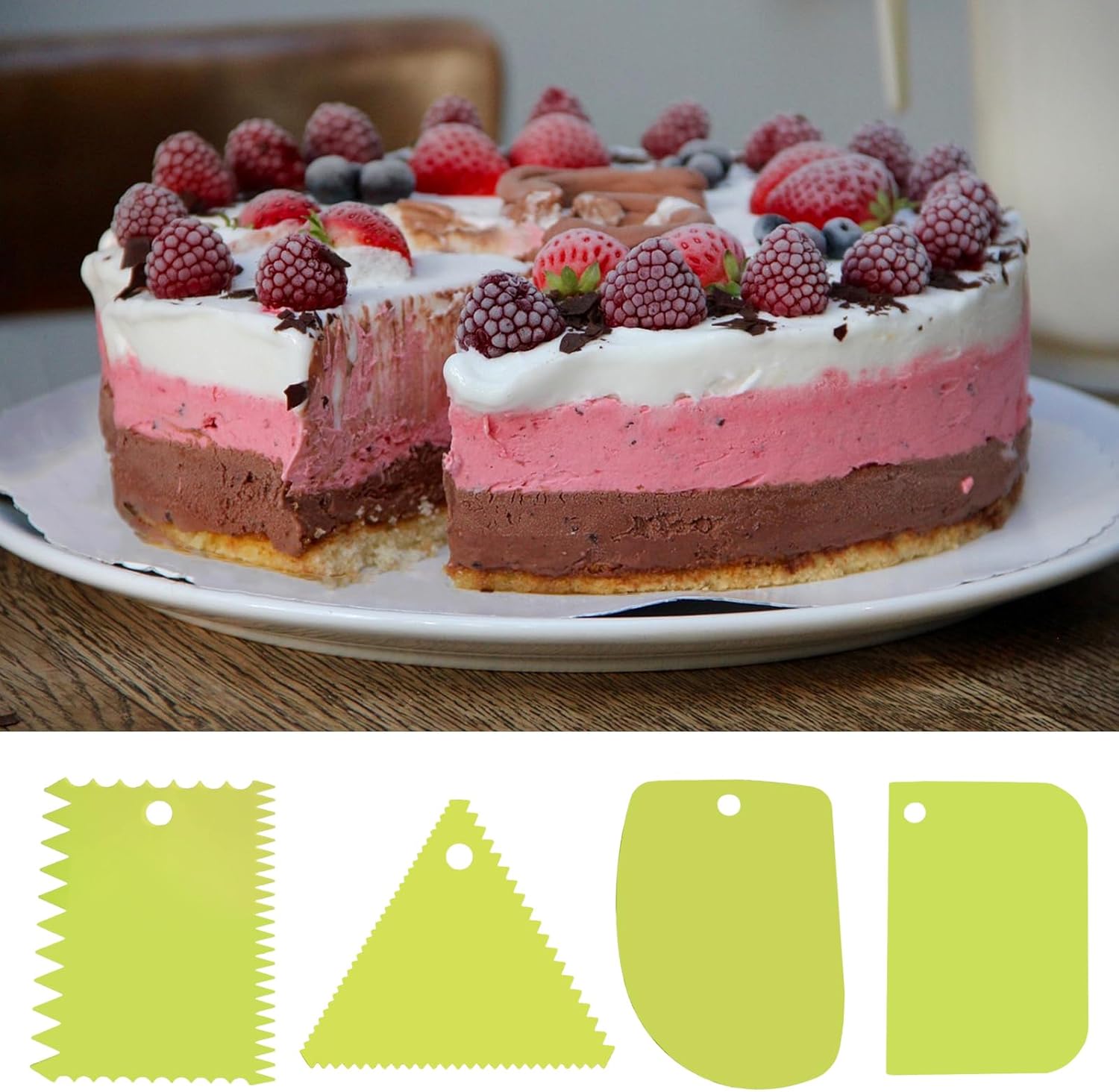 6pcs Cake Scraper Decorating Comb and Icing Smoother Reusable Bread Cream Pizza Cutter-Green