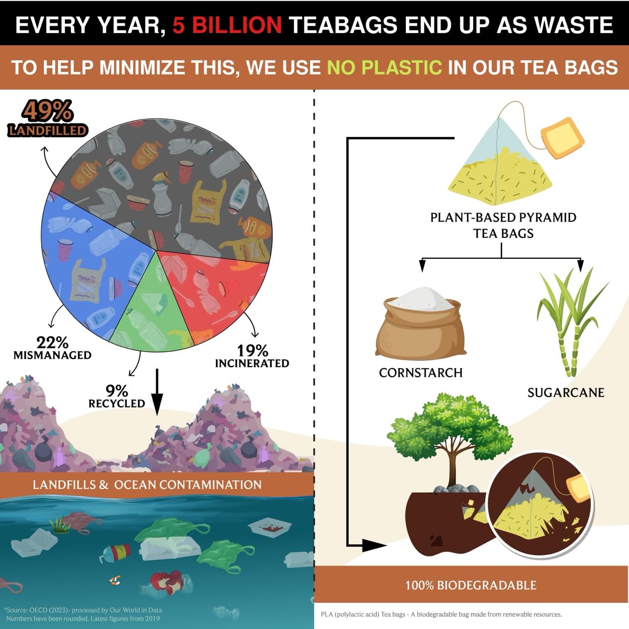 - CONVENIENTLY PACKED - The tea comes packed in pyramid bags that allow for a more fuller and intense brew as it provides ample space for the tea leaves to unfurl and infuse. We have removed individual sachets from our packaging to reduce wastage, instead the pyramid bags are packed inside a resealable pouch that can be conveniently stored or carried as a travel tea. Each black assam tea bag contains 2gms of tea.