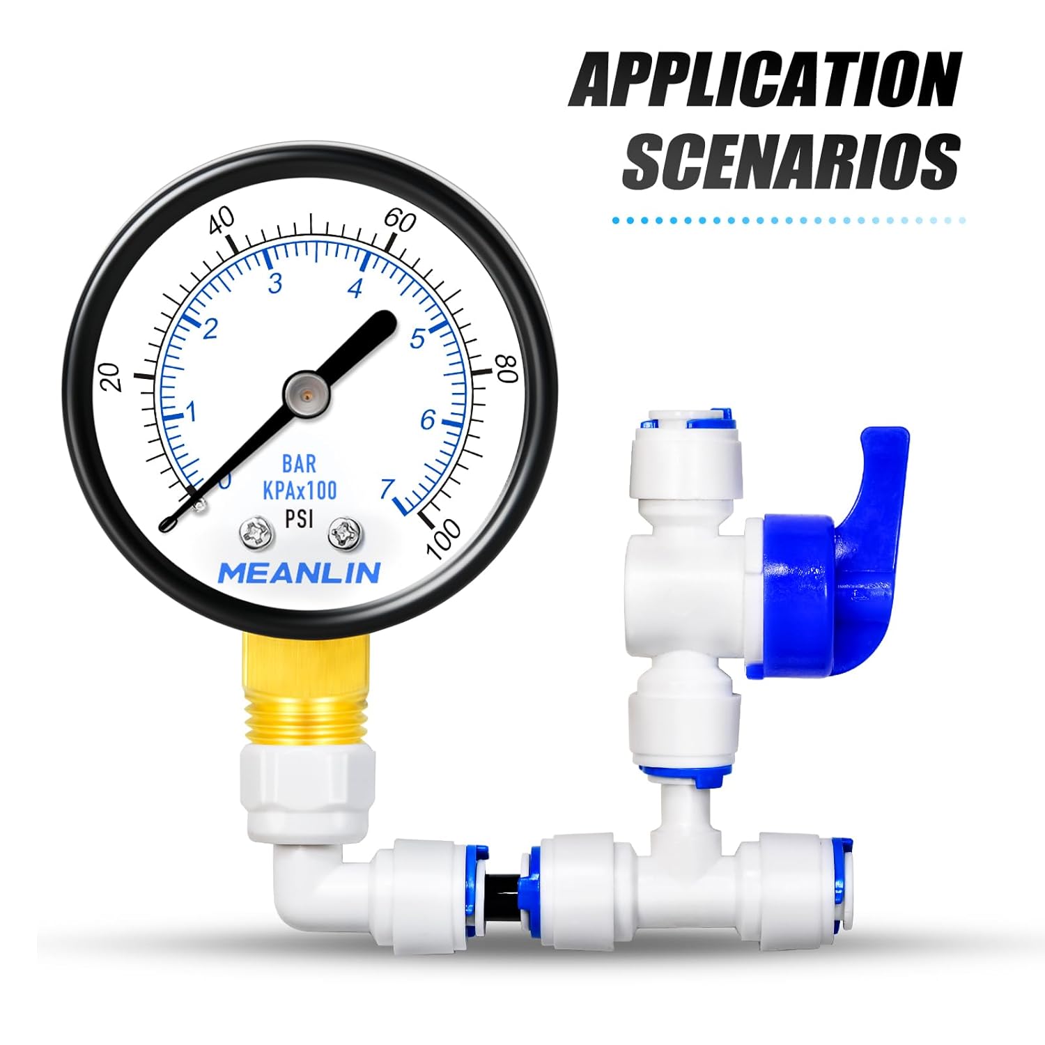 MEANLIN MEASURE 0-100Psi Well Pump Pressure Gauge 2" FACE DIAL 1/4" NPT for Well Pump Water Tire Water Pressure Tester Lower Mount, with Teflon Tape