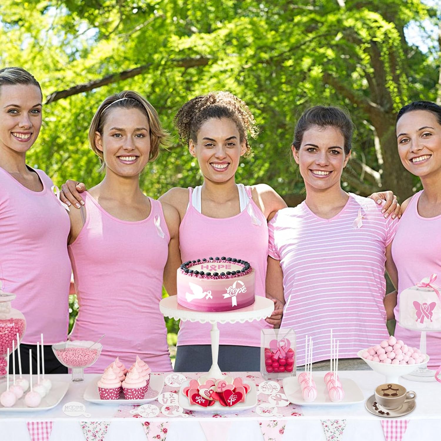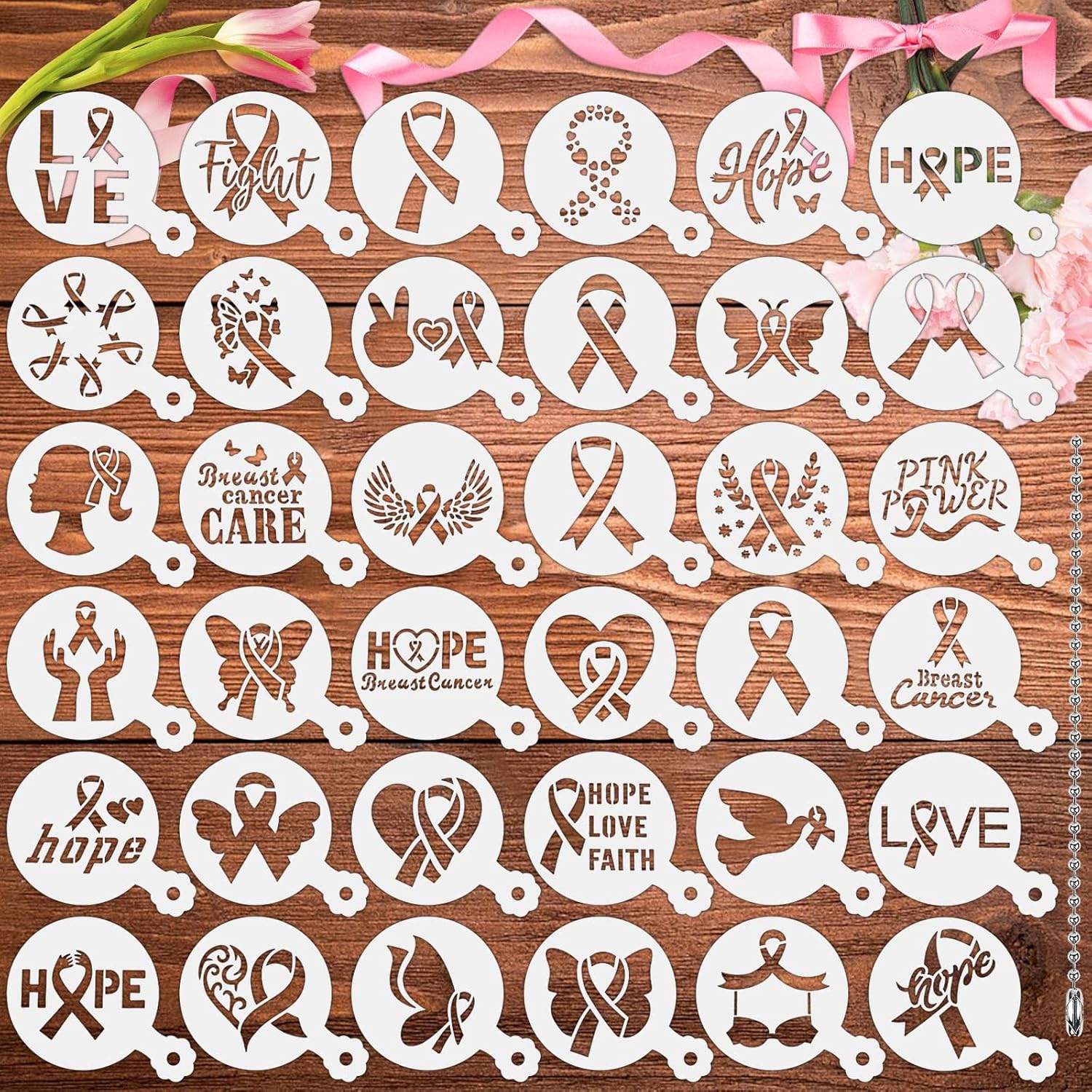 JULBEAR Breast Cancer Awareness Cookie Stencils, 36pcs Pink Ribbon Reusable Coffee Decoration Stencils Templates Tools for Cookies Baking Painting Dessert Decoration DIY Breast Cancer Awareness Party