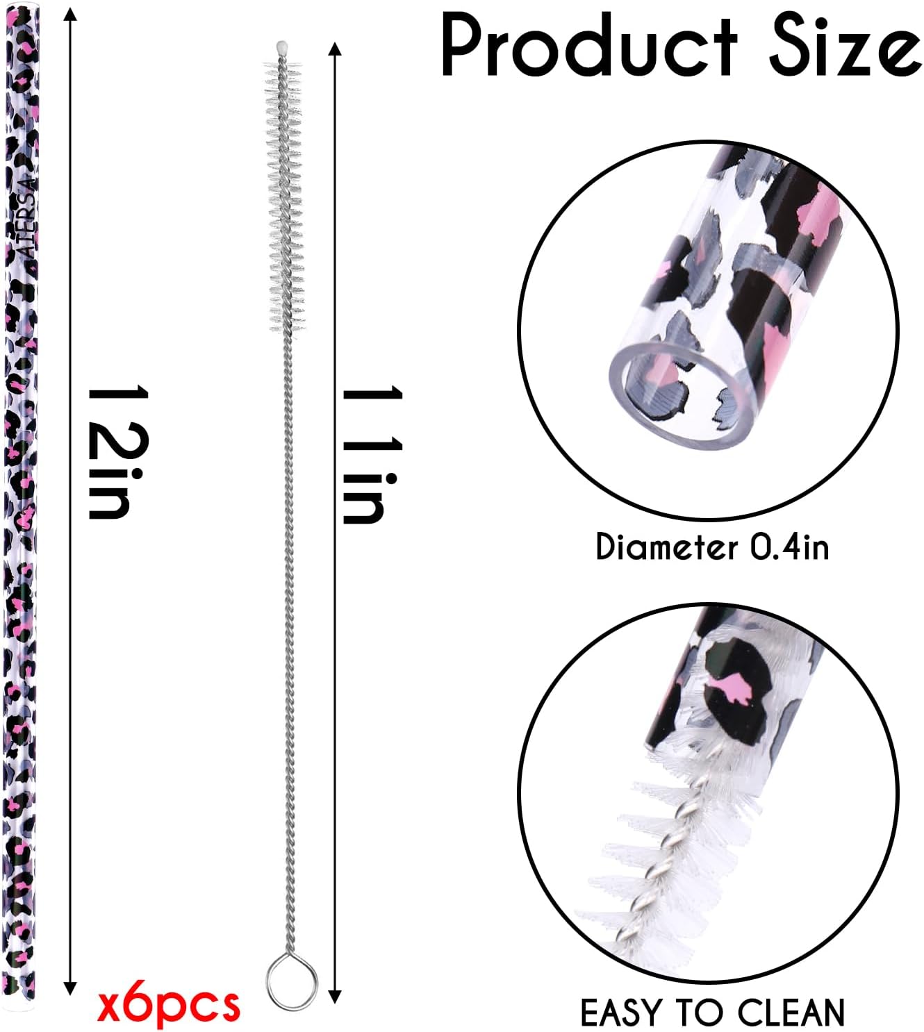 - Product size: AIERSA provides you with a replacement straw of 11.7inch in length and 0.4inch in diameter, which is perfectly for the Stanley tumbler and comes with a cleaning brush of 11inch in length, don't have to worry about cleaning problems.