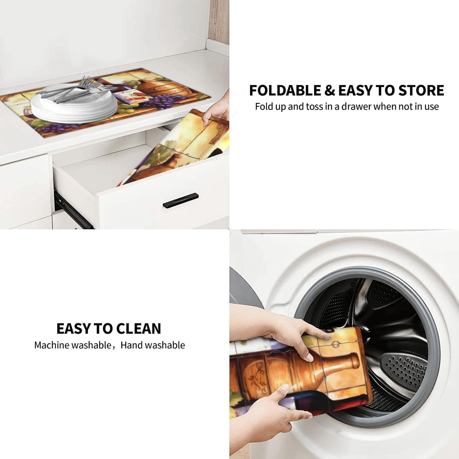Large Dish Drying Mats For Kitchen Counter Microfiber Kitchen Drying Mat XL Draining Pad Absorbent Quick Drying Dish Mat 18x24 Inch - Wine Bottle Tile Mural