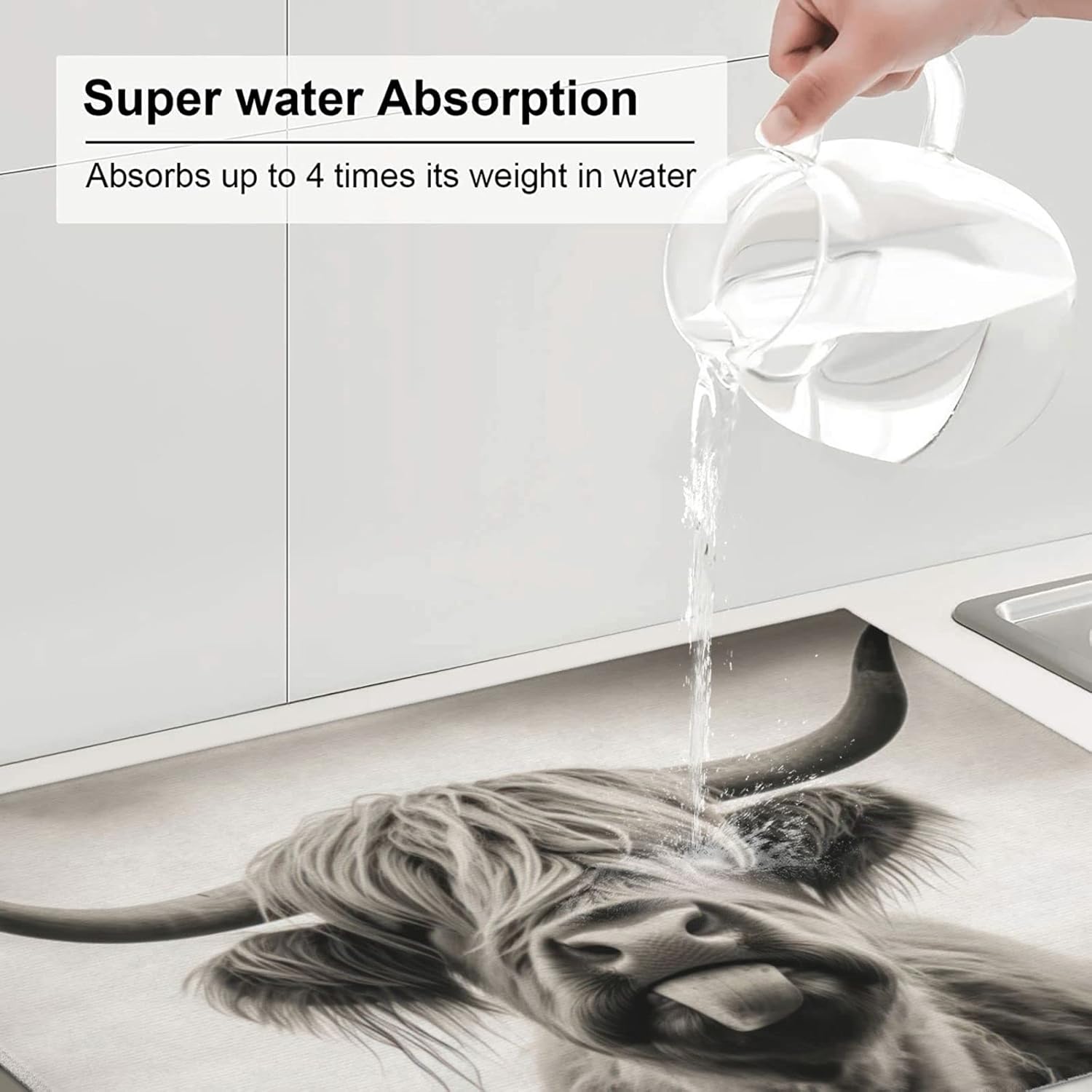 Large Dish Drying Mats For Kitchen Counter Microfiber Kitchen Drying Mat XL Draining Pad Absorbent Quick Drying Dish Mat 18x24 Inch - Cow Face