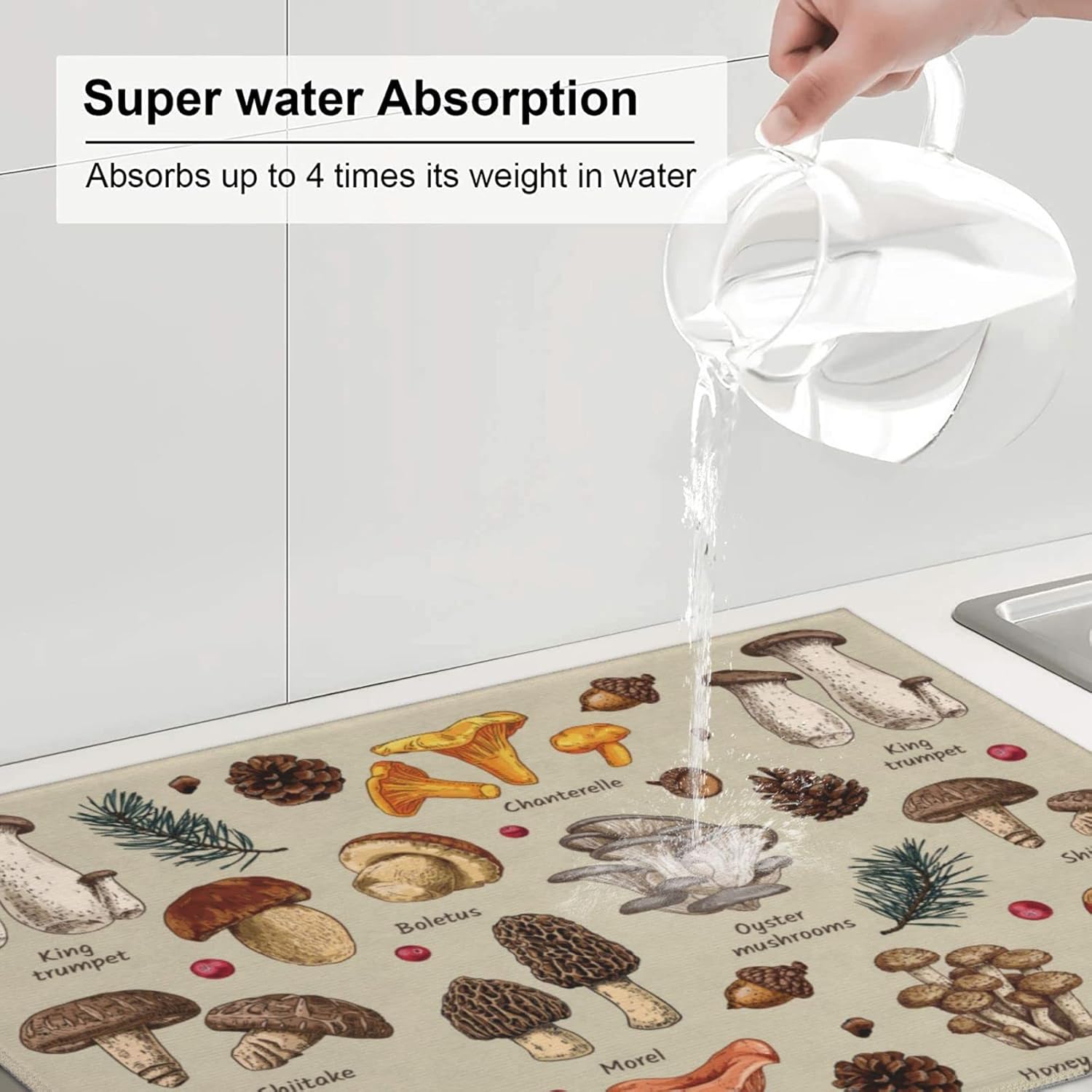 Mushroom Dish Drying Mats For Kitchen Counter XL Microfiber Kitchen Drying Mat Large Draining Pad Absorbent Quick Drying Dish Mat 18x24 Inch
