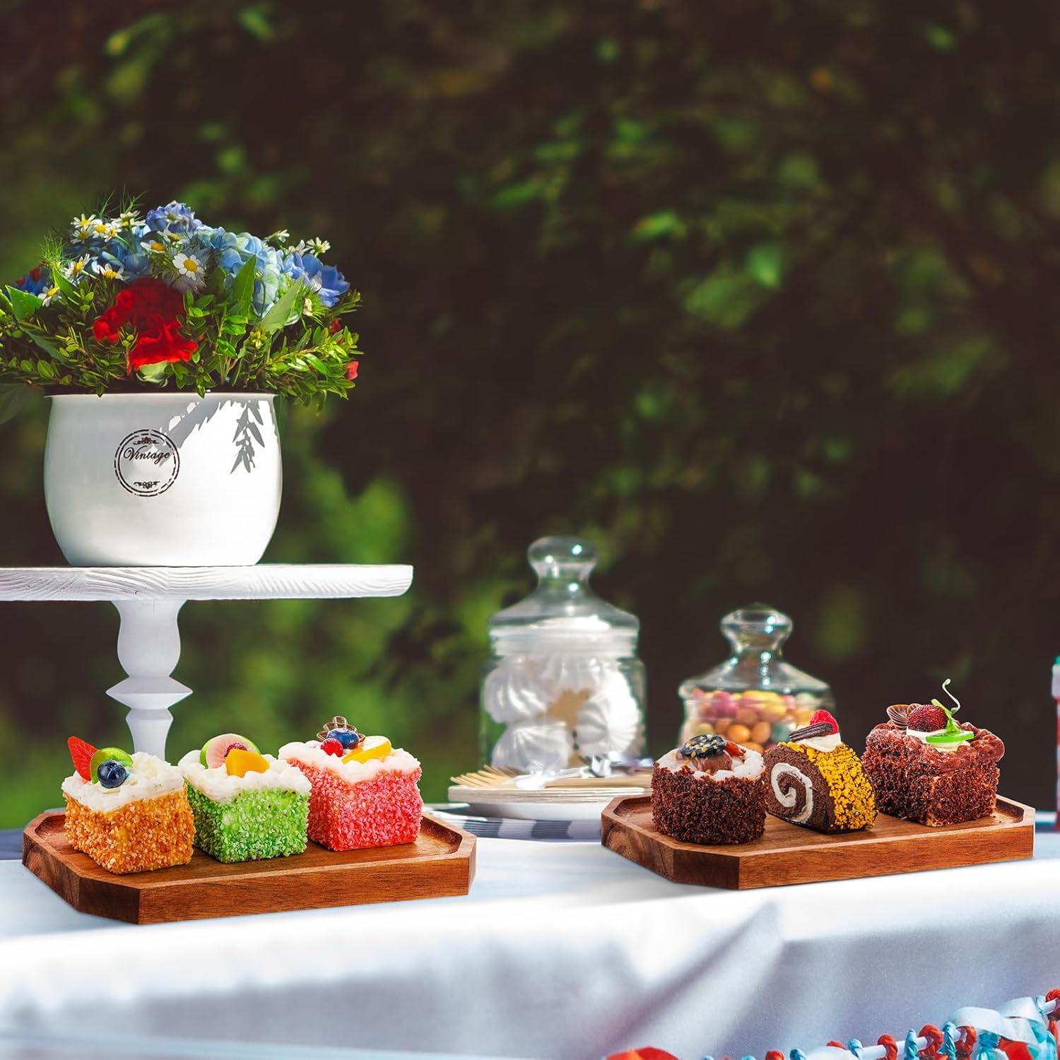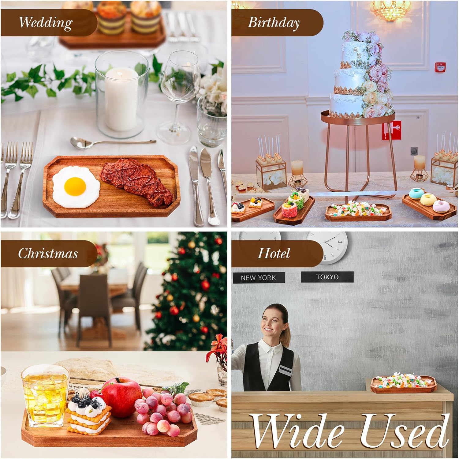 - 12 Wooden Trays: you will receive 12 pieces of rectangular octagonal wooden serving platter, the size is approx. 10 x 5 inch/ 25 x 12.5 cm, which can hold desserts, bread, coffee and more, suitable for cafes and other dining occasions; Note: natural wood is applied; The color of each tray is slightly different, but it does not affect the use