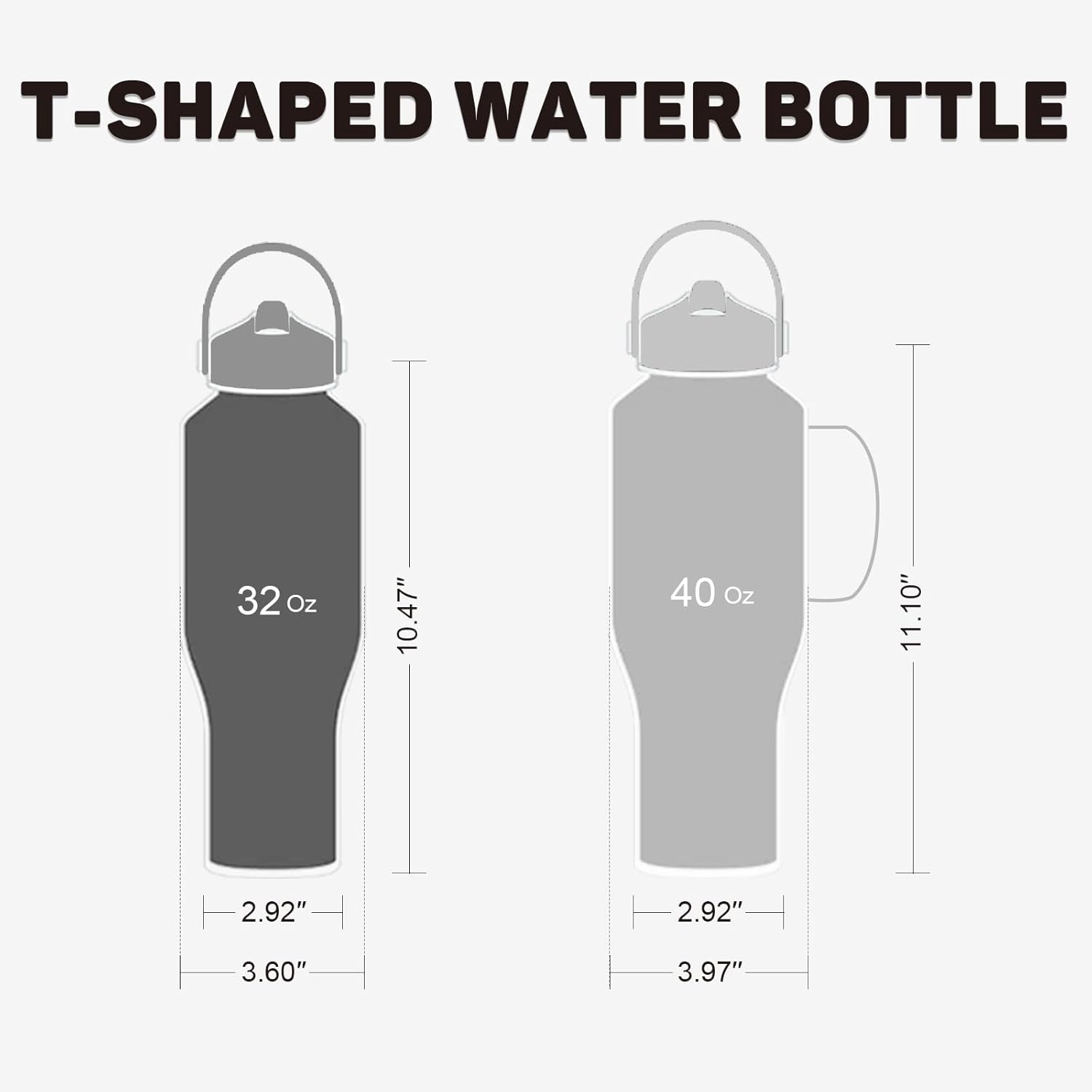 - 【T-SHAPED FOR CUP HOLDER】 Designed with a sleek and slim outline, this T-shaped water bottle fits in most car cupholders. ABOTOCUP T-shaped water flask suitable for outdoor when driving, cycling, beach holidays, and camping. 32 oz large capacity keeps your adventures running longer.