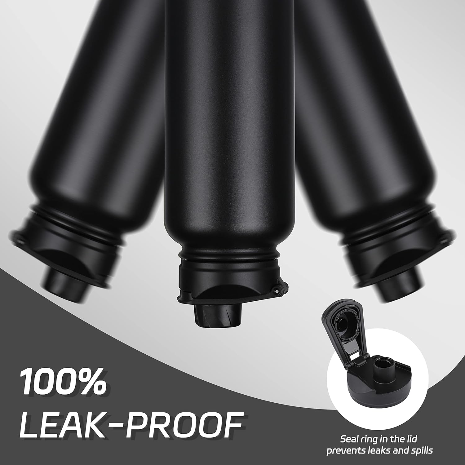 HASLE OUTFITTERS 40oz Stainless Steel Water Bottle, Vacuum Insulated Double Walled Leak Proof Sports Water Bottle with 2 Lids (Straw and Spout Lid) Thermo Mug Keep Cold and Hot(Black,4)
