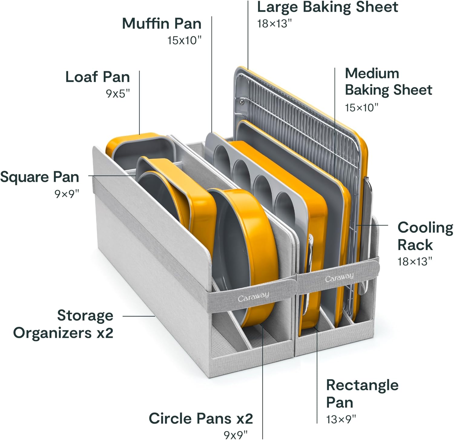 Caraway Nonstick Ceramic Bakeware Set (11 Pieces) - Baking Sheets, Assorted Baking Pans, Cooling Rack, & Storage - Aluminized Steel Body - Non Toxic, PTFE & PFOA Free - Marigold
