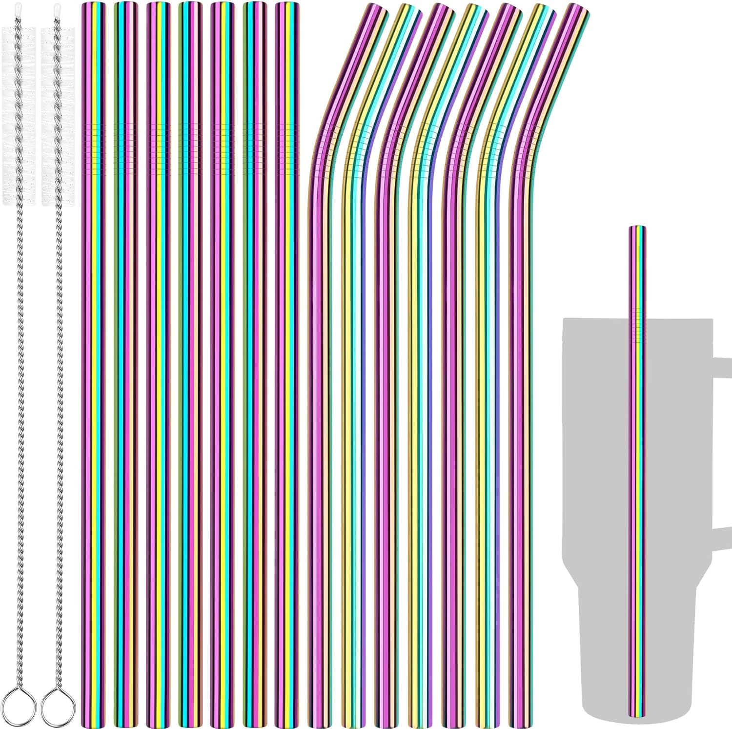 Tomorotec 40oz Straws, 14PCS Stainless Steel Replacement Straws for Stanley 40oz Adventure Quencher Travel Tumblers w/Cleaning Brushes 2PCS, Food-Grade, Dishwasher Safe for Smoothies (Metallic)