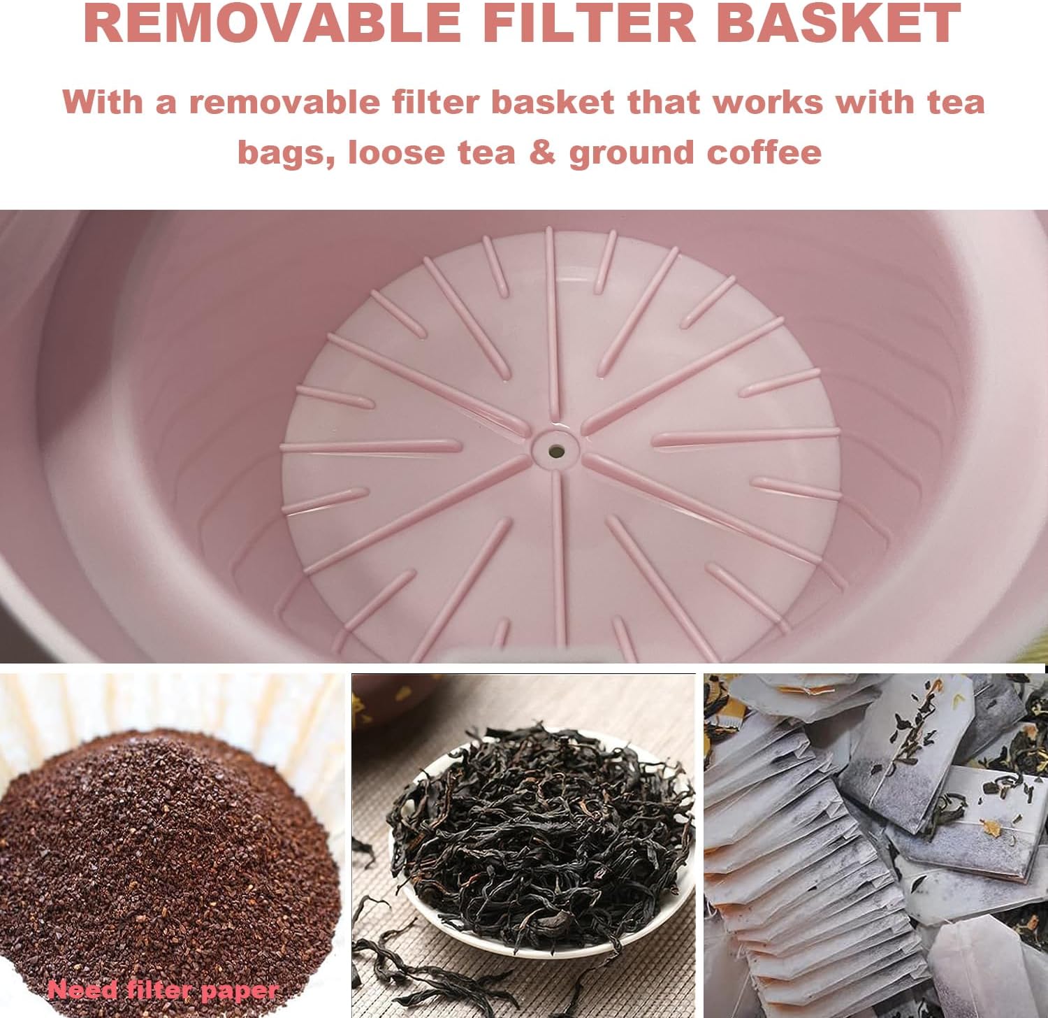 - 【Removable Brew Basket】The removable basket works with fresh ground coffee, tea bags and loose leaf teas, while the shower head is designed for complete saturation and optimal flavor extraction.