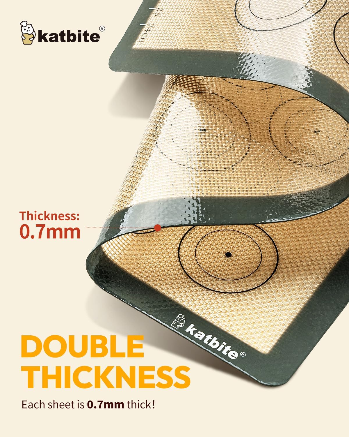 Silicone Baking Mat Set of 5, Katbite Food Grade Non-stick Reusable Cookie Sheet Bakeware Mats for Making Macaron, Cookie, Pizza, Pastry