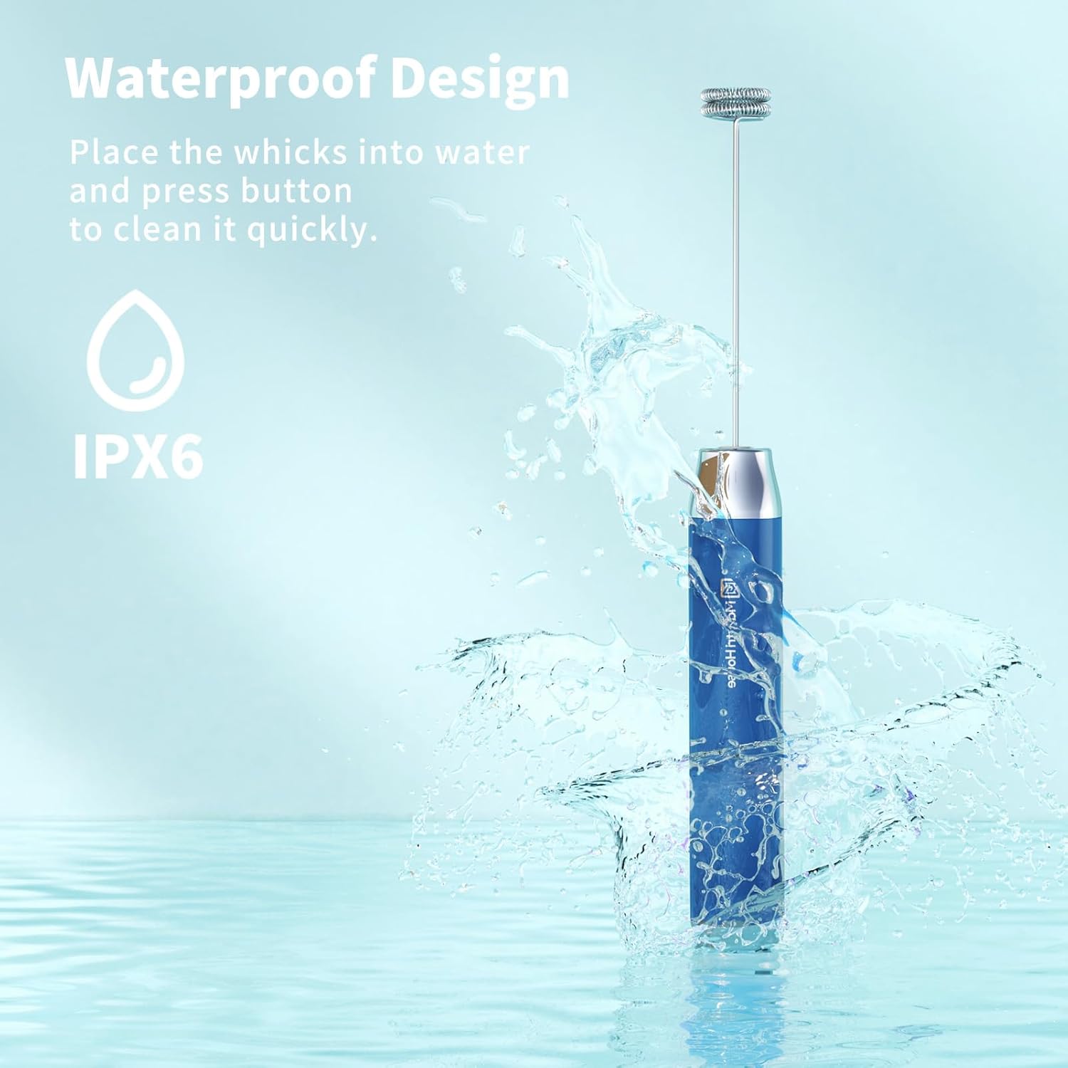 Maestri House Rechargeable Milk Frother with Stand, LunaFro Handheld Electric Foam Maker Waterproof Detachable Stainless Steel Whisk Drink Mixer Foamer for Lattes, Cappuccino