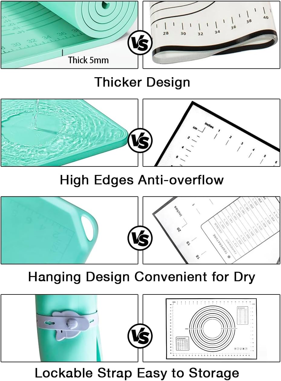 - PREMIUM MATERIAL: QUUZ Silicone Baking Mat is Made of High Quality Food Grade Silicone Material, No Slippage When Kneading and No Stickiness When Rolling, Soft and Comfortable. Won't Lose Its Luster or Fade. It is Durable, can Meet Your Baking Needs for Years.