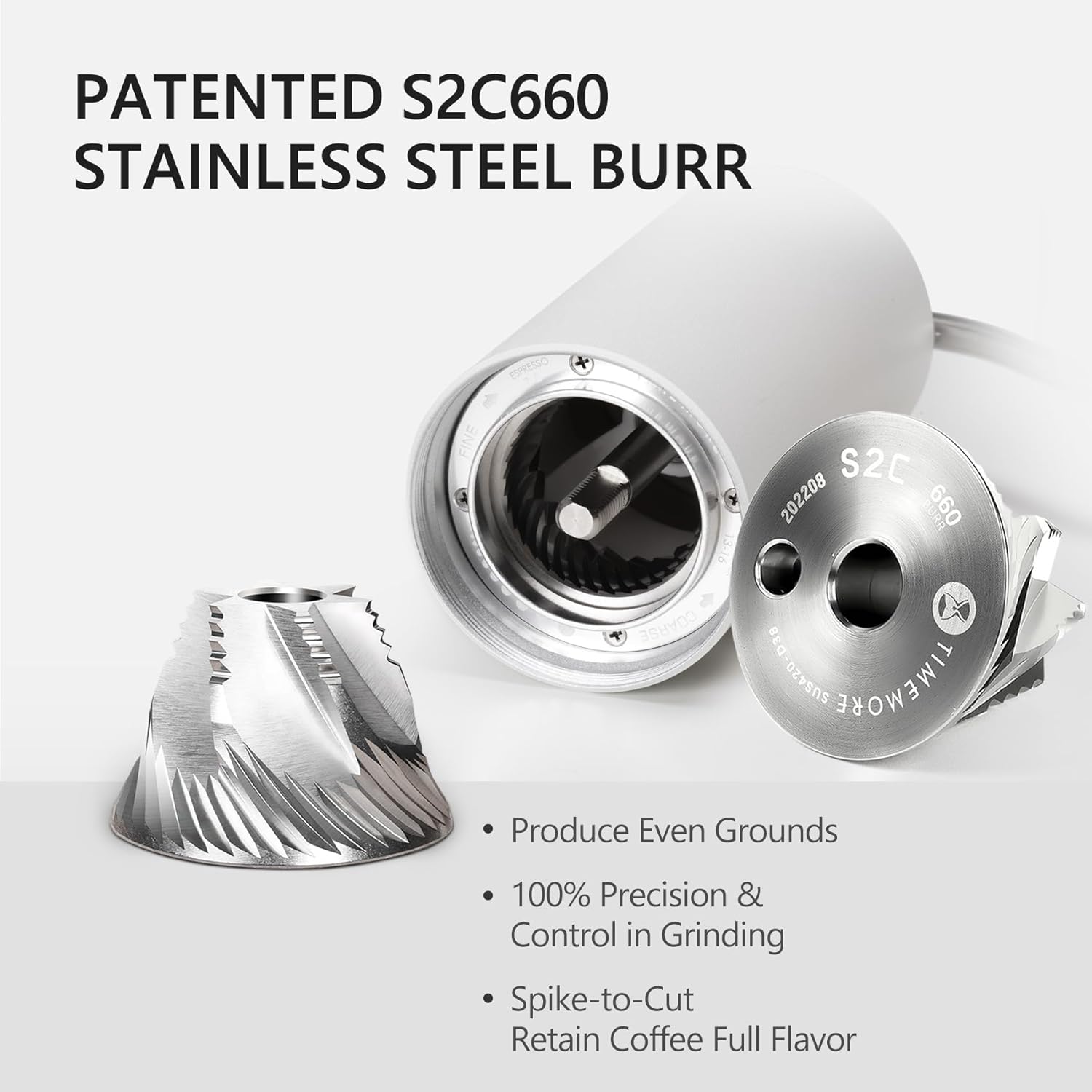 TIMEMORE Chestnut C3S Manual Coffee Grinder with CNC Stainless Steel Conical Burr Capacity 25g, Internal Adjustable Setting, Double Bearing Positioning for Travel, Camping, White