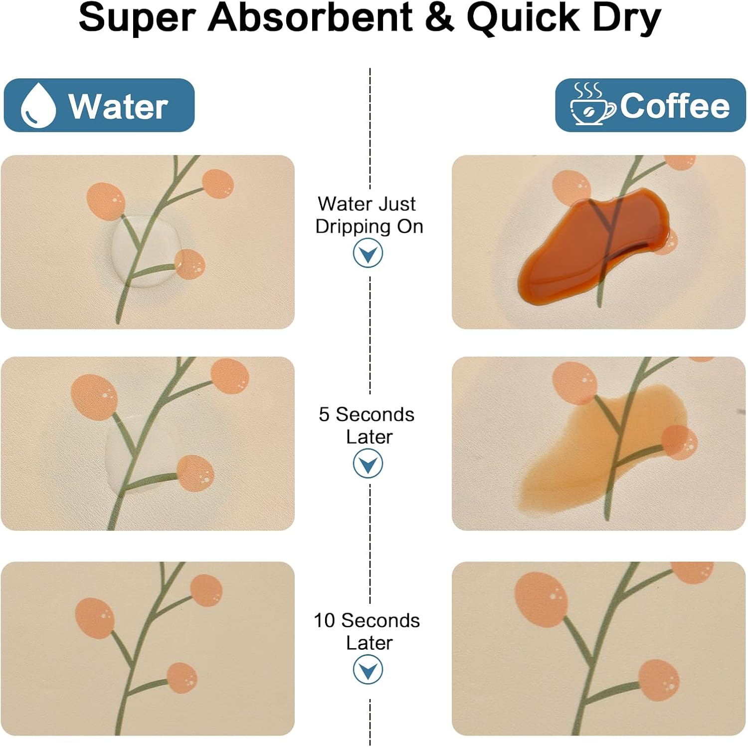 - 【Widely Usage】The coffee drying mat can not only be used under the coffee machine, but also can use it under water filters, dish strainer, water distillation machine, ice maker, or as a pet peeding mat, etc. With its super water absorption and quickly drying properties, we can widely use it in the drying mat of countertop, kitchen cabinet, bathroom cabinet, room table, blender, water dispenser, dishwasher, tableware, cup, etc.