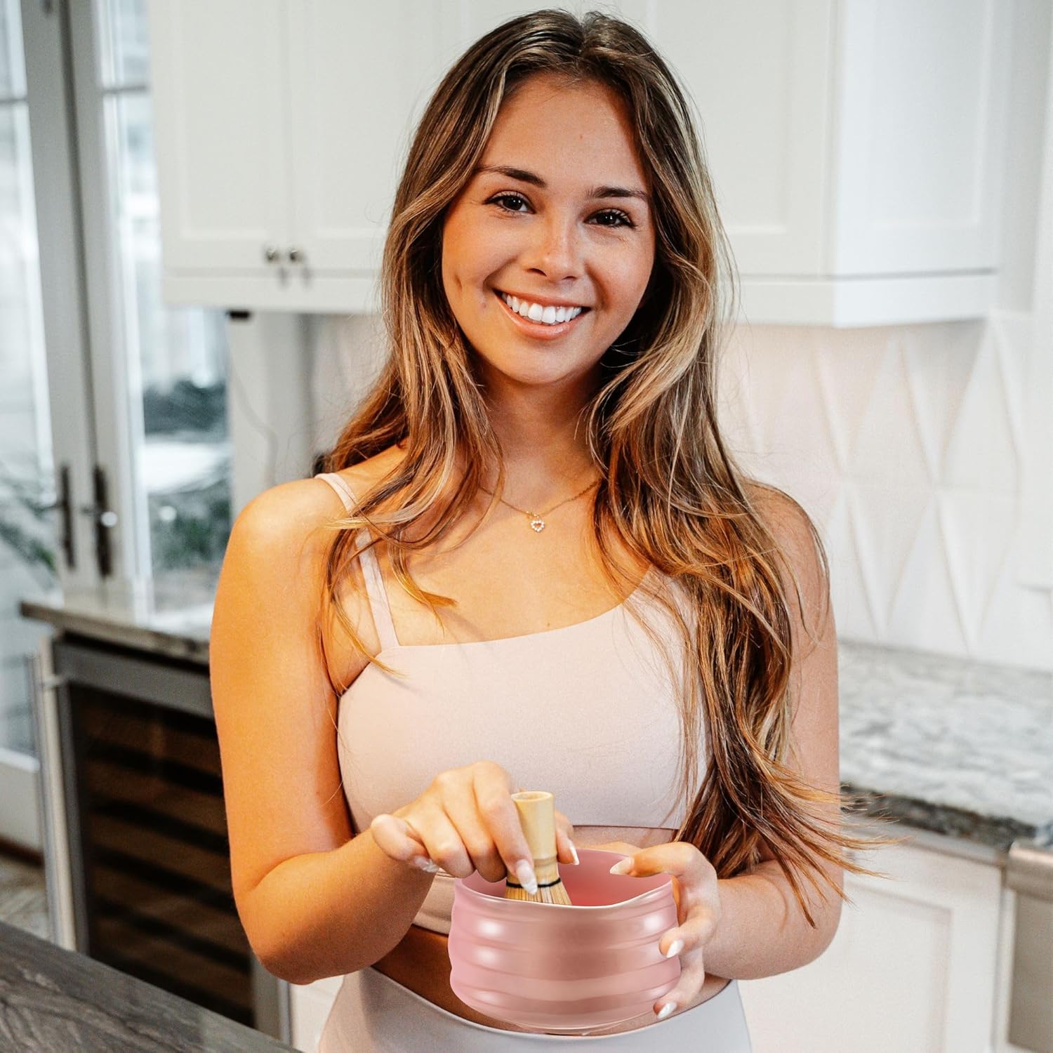 Marce Matcha Whisk Set- Matcha Set includes Matcha Bowl, Sifter, Holder and Scoop- The Perfect Bamboo Whisk for Matcha Tea (Pink)