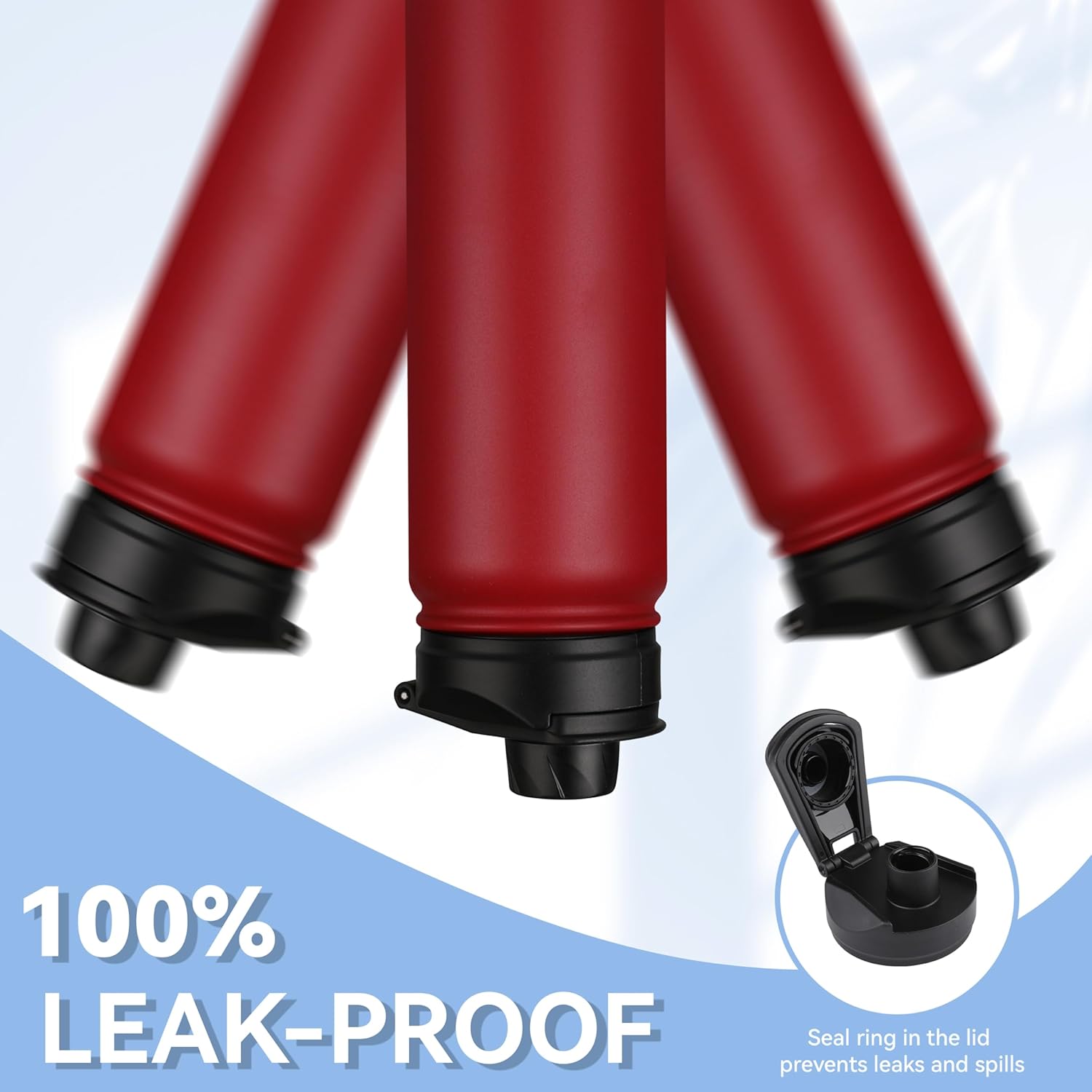 HASLE OUTFITTERS Insulated Water Bottle 22 oz Double Wall Stainless Steel Water Bottle Wide Mouth with Straw Lid & Spout Lid Keeps Cold or Hot(Red,4)