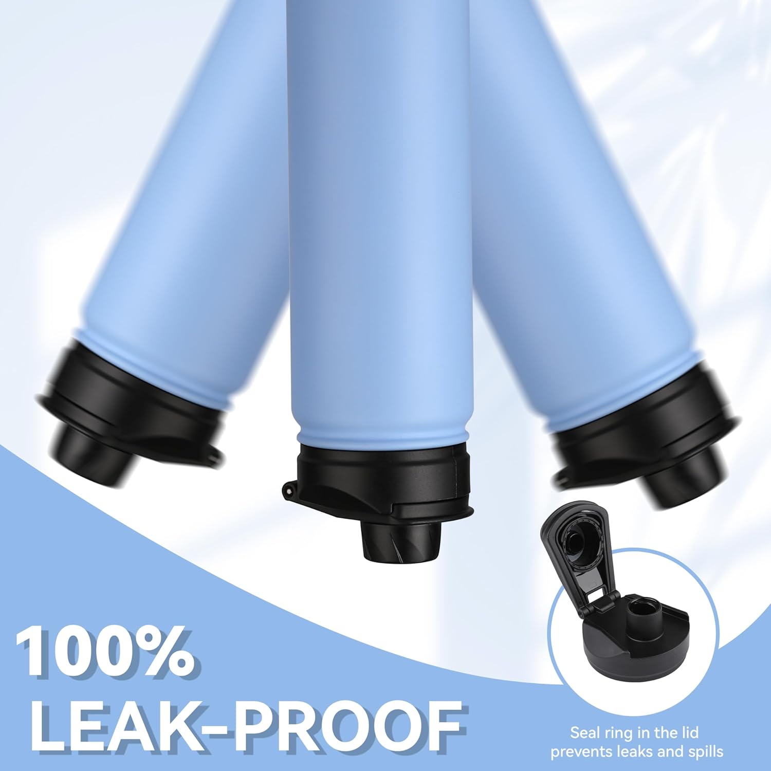 - 【SPOUT LID & STRAW LID】Available in 2 leak-proof covers that can be switched at any time: 1 flip-up straw lid, 1 easy-twist spout lid. All caps are leak-proof, so you can drink on the go without spilling, and don't worry get wet and putting it in your bag. Its wide-mouth opening makes your ice or fruits filling and cleaning easy and fast.