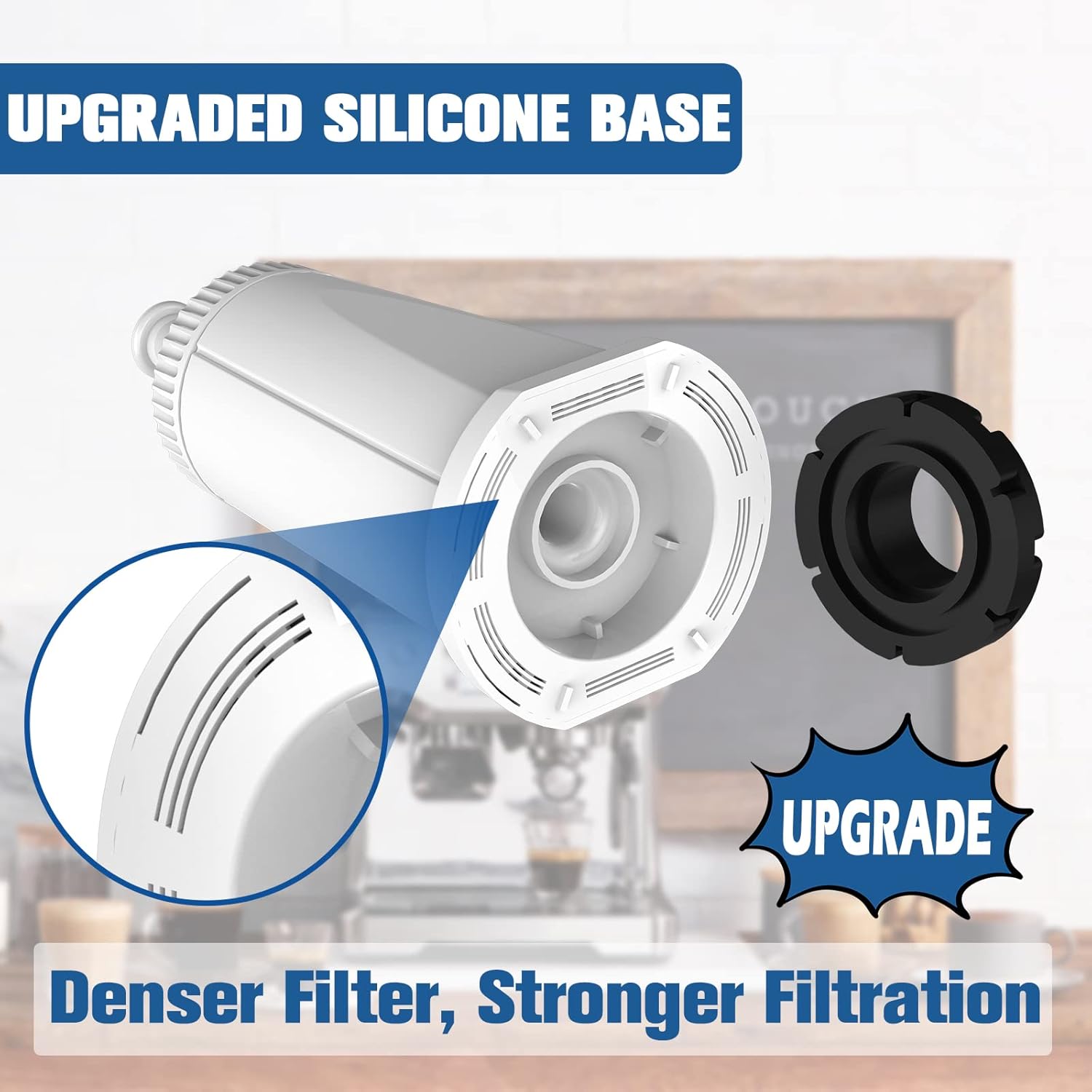 - 𝗡𝗘𝗪 𝗦𝗨𝗣𝗘𝗥 𝗖𝗥𝗔𝗙𝗧 - Enjoy a better coffee experience with Funmit espresso machine water filter for breville. Our espresso machine filter adopts advanced microfiltration technology using coconut activated carbon adsorption and ion to reduce chlorine, heavy metals, and other harmful contaminants while retaining minerals and fluorides to protect your coffee machine. Plus, we added a non-toxic and harmless silicone pad and a finer filter to the base for better performance