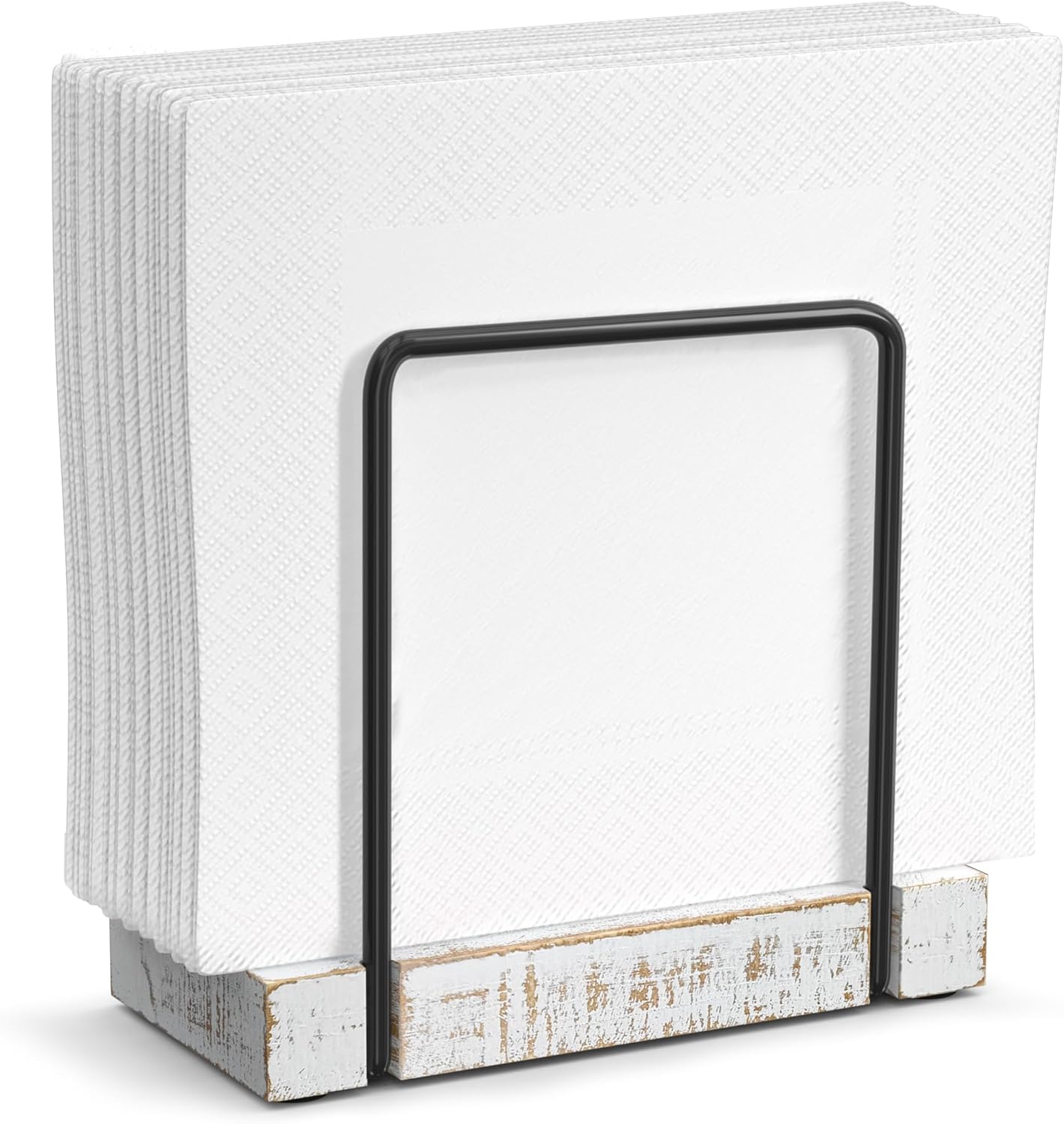 Napkin Holder for Table, Wood Iron Standing Napkin Dispenser for Dining Table Farmhouse Cocktail Picnic Rustic Wood Holders All Kitchen Dining Room Decor Black & Farmhouse White