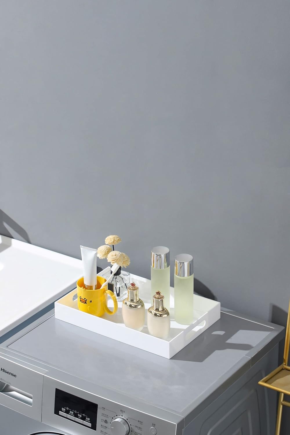 Glossy White Sturdy Acrylic Serving Tray with Handles-10x15Inch-Serving Coffee,Appetizer,Breakfast,Butler-Kitchen Countertop Tray-Makeup Drawer Organizer-Vanity Table,Ottoman Tray-Decorative