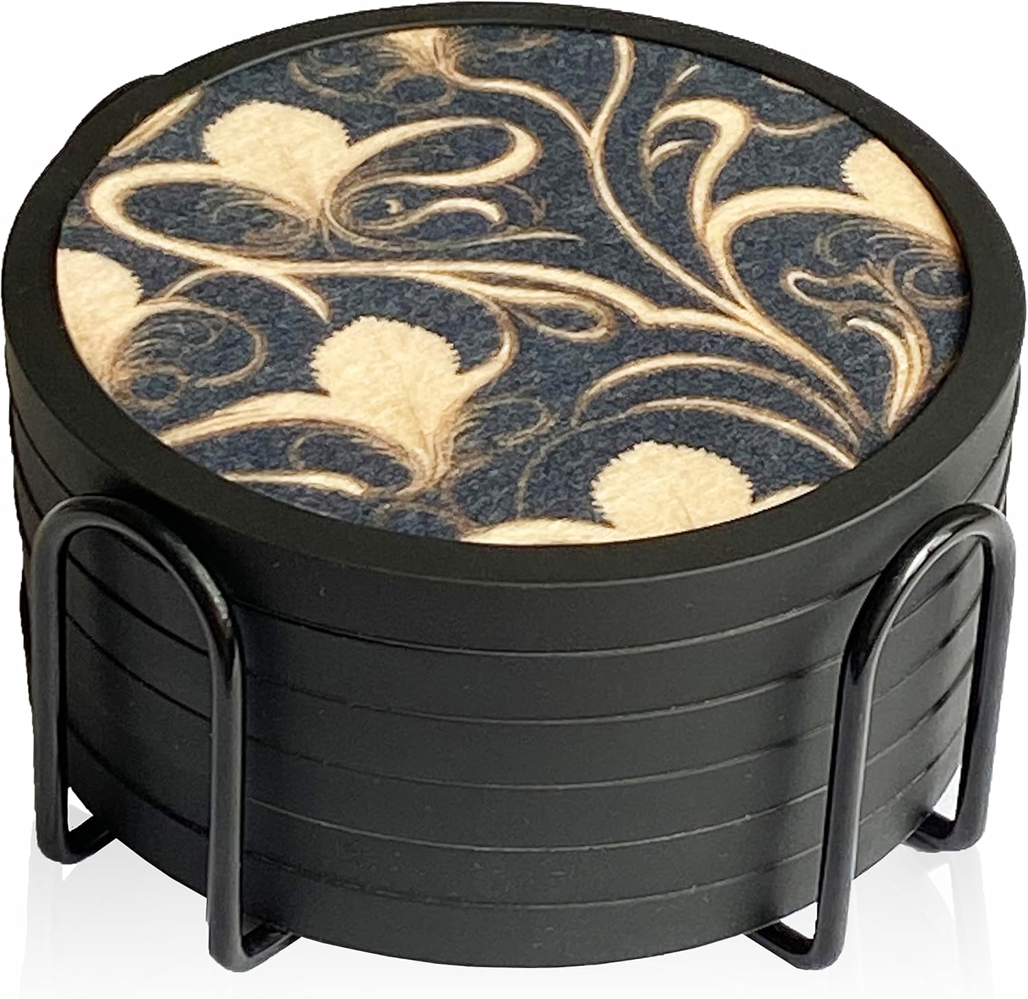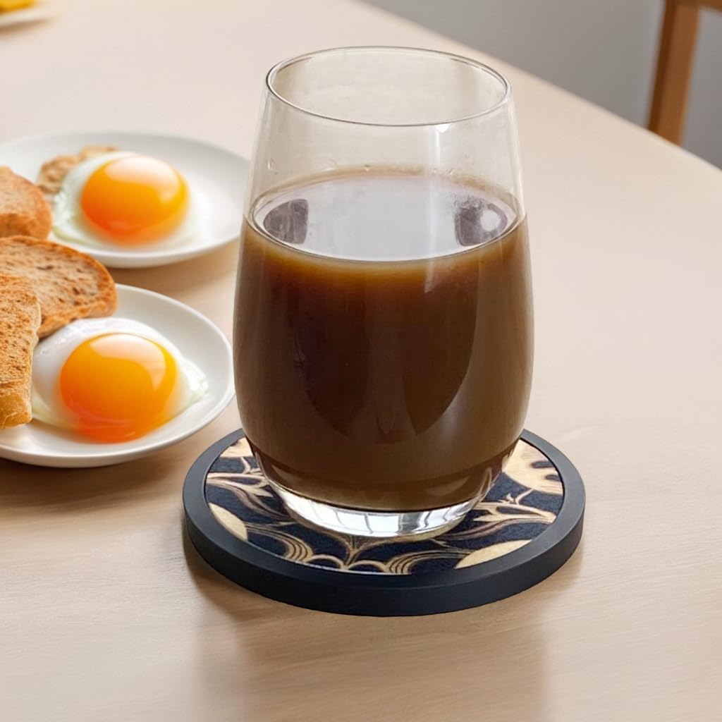 Absorbent Coasters for Drinks with Holder - 6packs, Silicone Coaster with Soft Felt Insert (4.3 inch Coasters with 4.5 inch Holder, Dual-Sided Flower -Themed Patterns)
