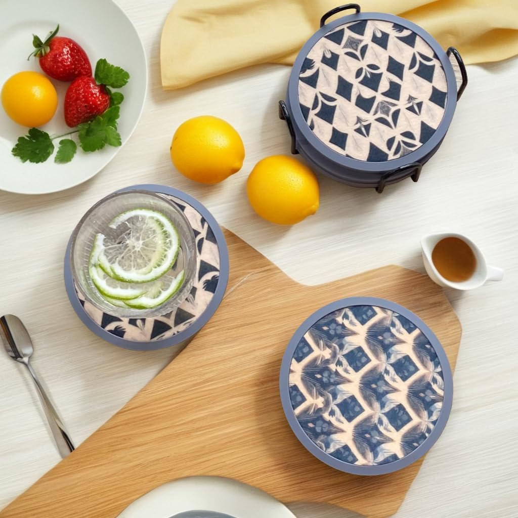 - Effective Moisture Absorption: The center of each coaster features an absorbent felt insert. This insert excels at soaking up moisture from your drinks, keeping your table dry and free from unsightly water rings. Whether you're enjoying a steamy cup of coffee or a chilled cocktail, our coasters have got you covered.