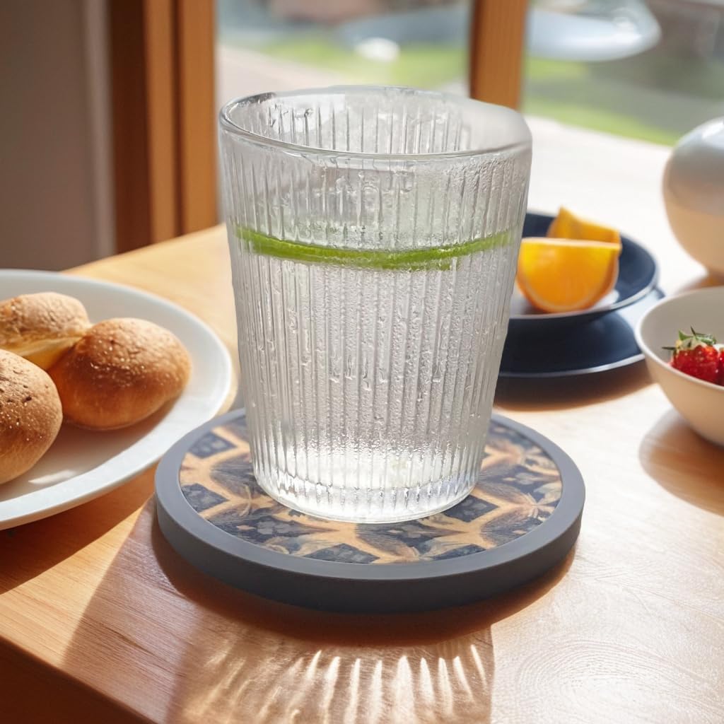 - Premium Silicone Construction: These coasters are crafted from top-quality silicone material. The silicone base not only ensures durability but also provides a firm, non-slip grip on your table, preventing accidental slips and protecting your furniture from scratches. It's heat-resistant, making it suitable for both hot and cold beverages, and it won't stick to your glassware.