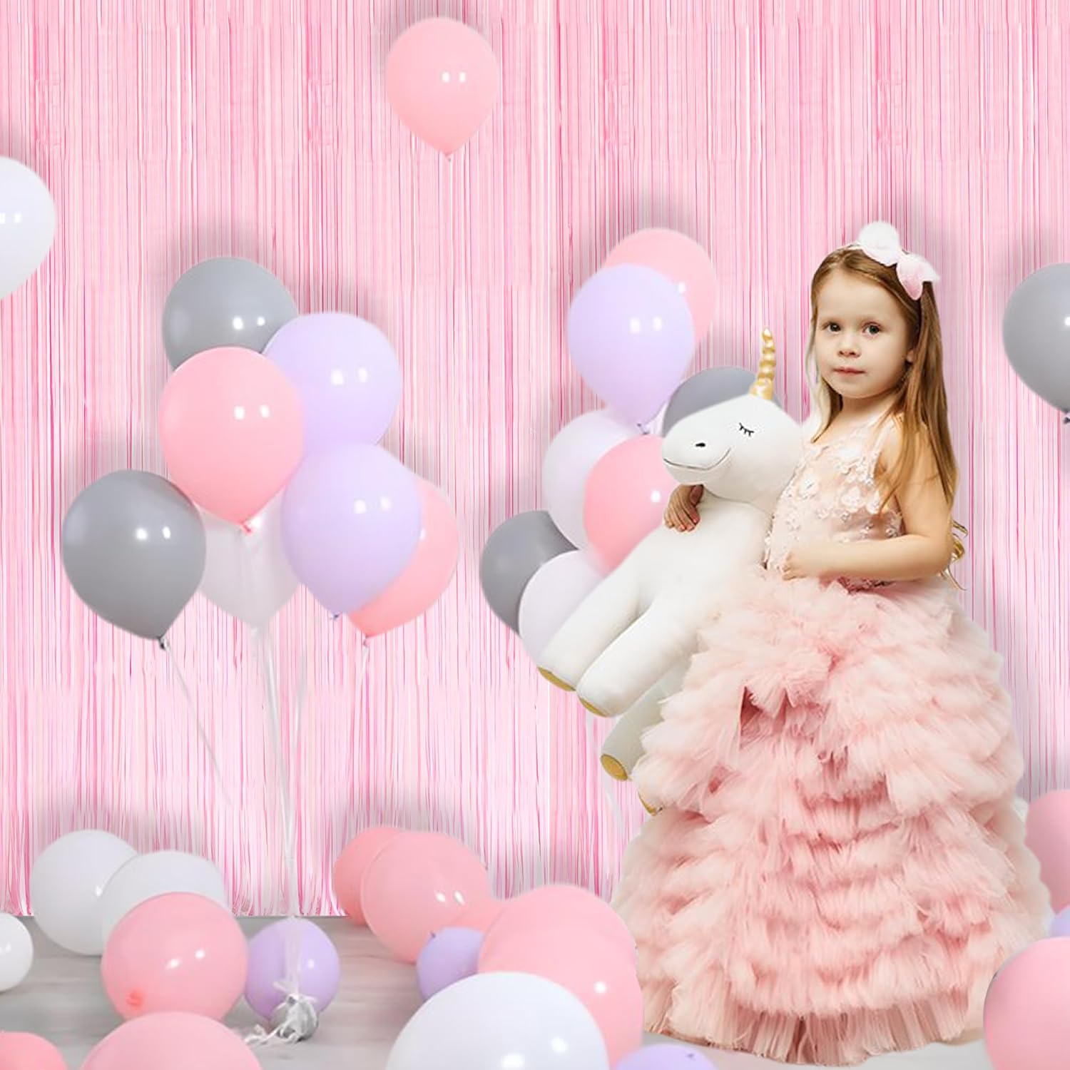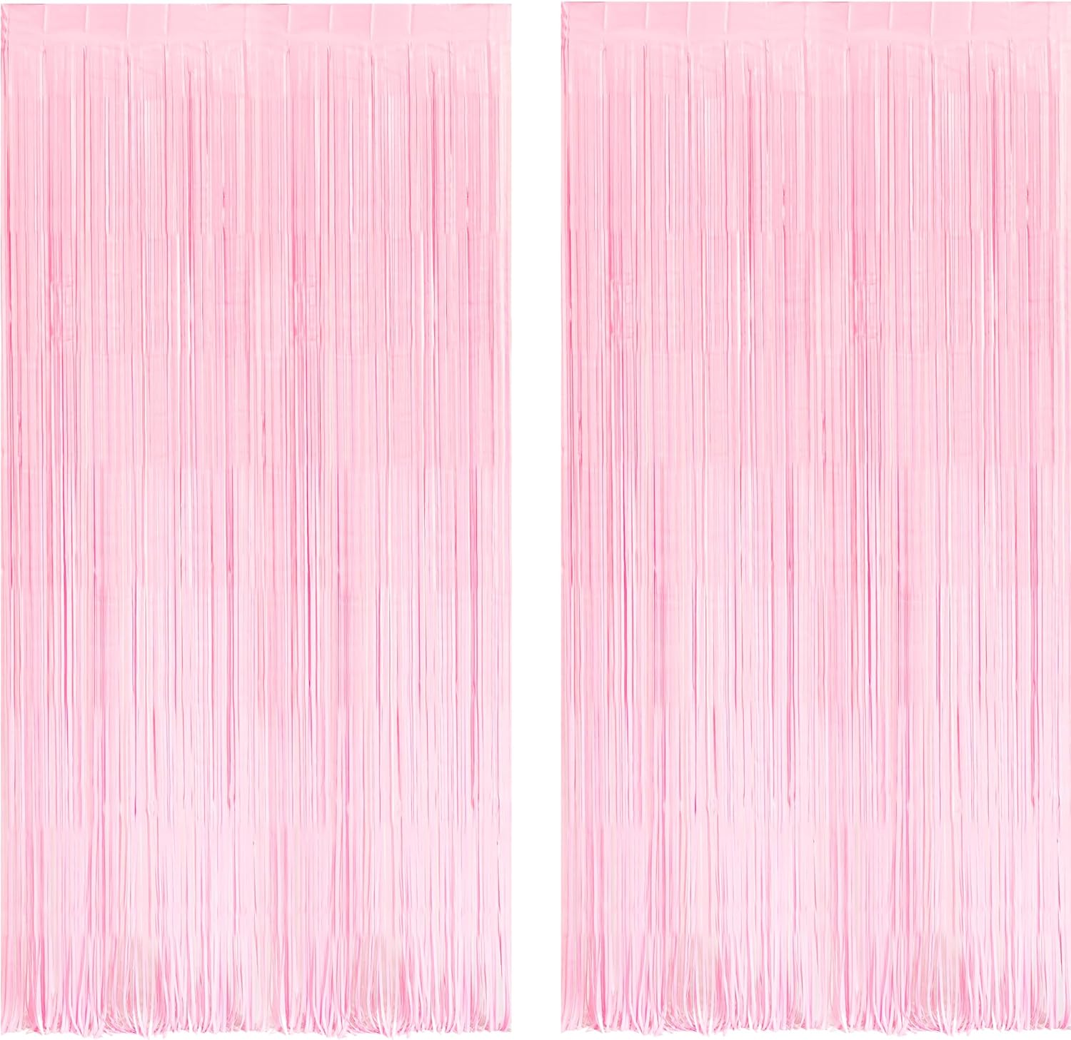 BRAVESHINE Pastel Pink Foil Fringe Curtains Tinsel Backdrop - 2 Pack Photo Booths Party Streamers Supplies for Halloweens/Boo Girls Princess Birthdays Bridal Shower Bachelorette Sweet Bow Decorations