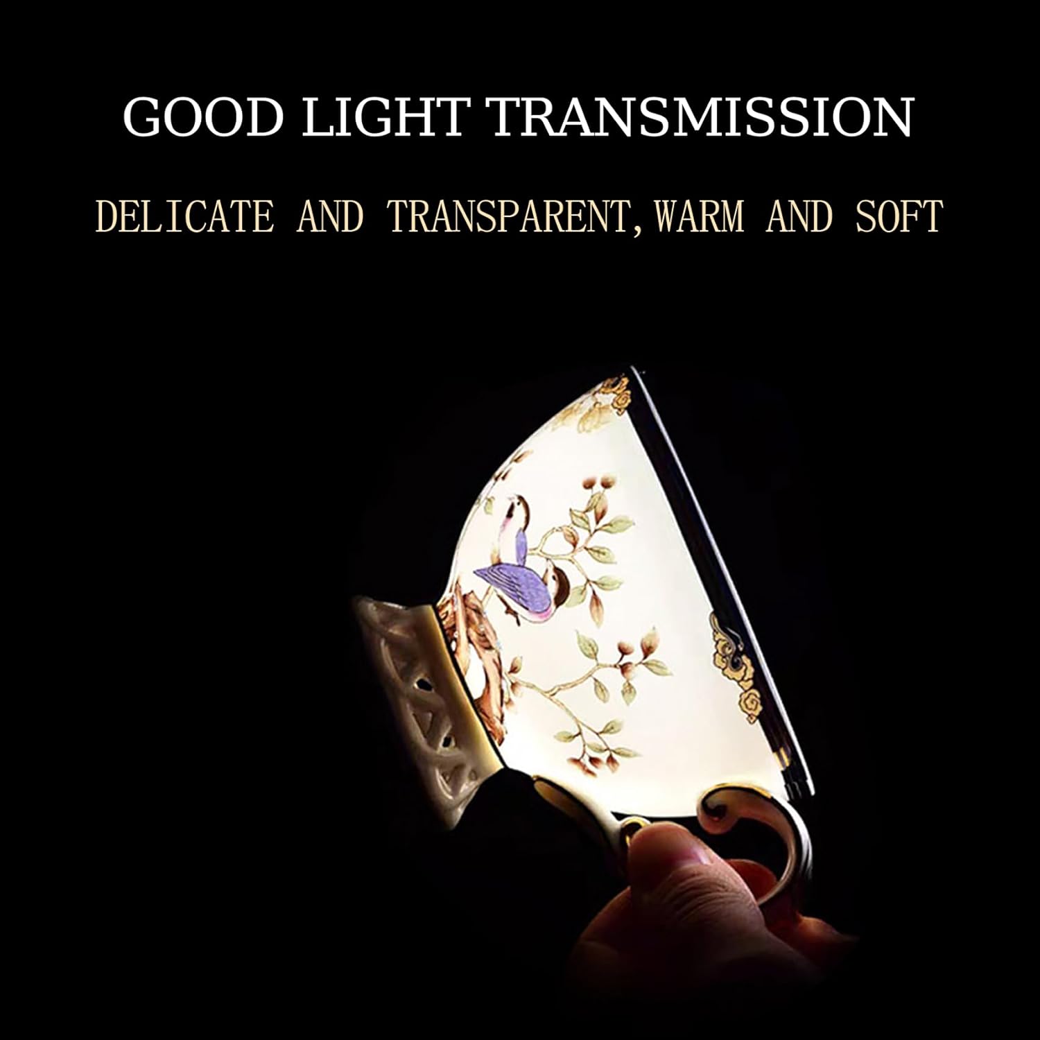 - [Unique Design] The bone china tea cup set uses high-content bone china as the material. The vintage tea set takes the phoenix and peony as the main creative elements, combined it with ink art, and depicts a peaceful and vibrant scene of a hundred birds facing the phoenix. The hand-painted gold edging of this tea cup and saucer set adds to its charm, making it the perfect addition to any home decor.