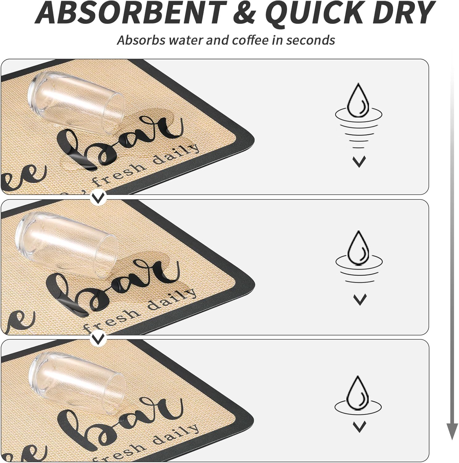 Coffee Mat - Absorbent Hide Stain Rubber Backed Dish Drying Mat for Kitchen Counter - Bar Mats for Countertops Accessories Fit Under Coffee Maker Espresso Machine