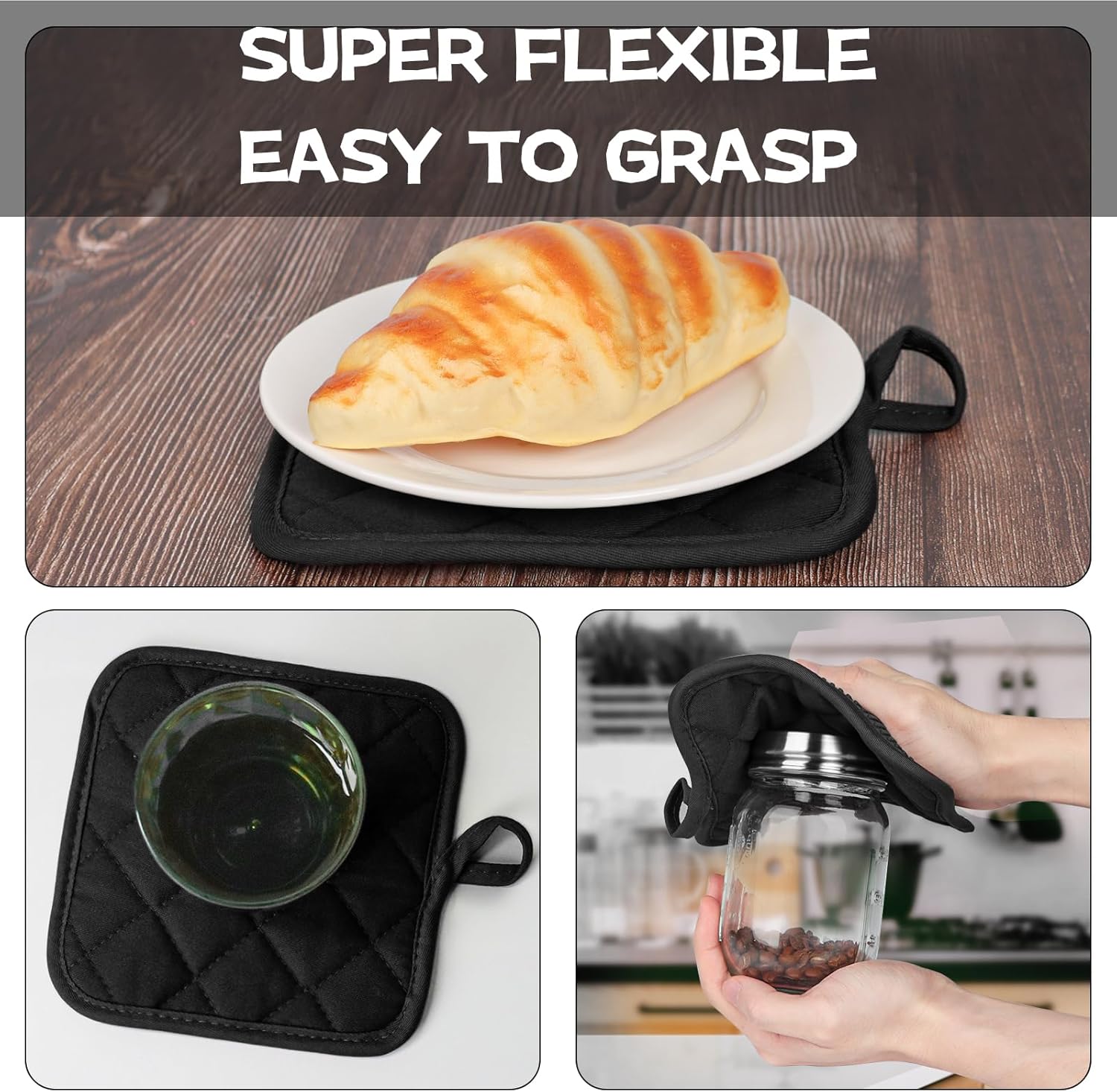 - 4 PIECE GREAT VALUE HOUSEHOLD ESSENTIALS PACK: Super value for 4pcs short oven mitts and pot holders, including 2 oven mitts(6.8 x 5.3in) and 2 pot holders (6.6 x 6.6in), perfect for daily use and coordinate well with your house and kitchen.